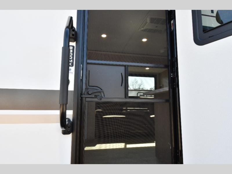 Brynlee Teak Interior • Peace of Mind Package • Ultimate Power Package • Four Seasons Protection Package • Solar Package • Goodyear Tires • Winterization • SafeRide RV Roadside Assistance • ABS Axle Assembly w/Sway Control • 50 Amp Service – Wired & Framed for 2nd A/C • Theater Dinette • RVIA Seal