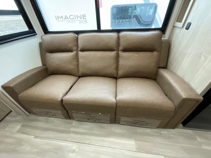 Just imagine leaving the world behind and secluding yourself away with your favorite people in your Grand Design Imagine travel trailer! The Imagine has been designed to enjoy extended season camping and includes a high-capacity furnace, a heated and enclosed underbelly with suspended tanks, a designated heat duct to the subfloor, and a high-density roof insulation with attic vent. You'll have maximum head room on the interior with 81" radius ceilings, and large panoramic windows to let in natural lighting. The exclusive drop-frame pass-through storage compartment is going to allow you to bring along lots of equipment, and the universal docking station is an all-in-one location for utilities and hook-ups. You'll also have oversized tank capacities so that you can fill and empty your tanks less often.
