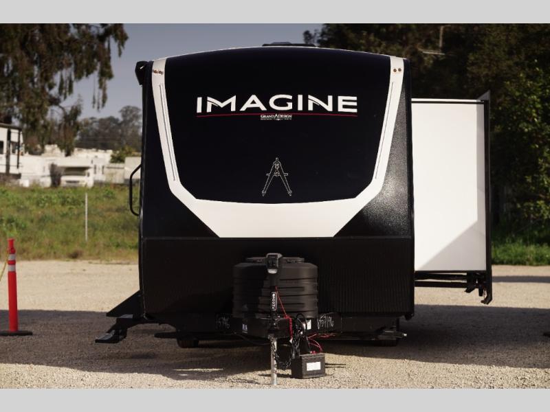 Just imagine leaving the world behind and secluding yourself away with your favorite people in your Grand Design Imagine travel trailer! The Imagine has been designed to enjoy extended season camping and includes a high-capacity furnace, a heated and enclosed underbelly with suspended tanks, a designated heat duct to the subfloor, and a high-density roof insulation with attic vent. You'll have maximum head room on the interior with 81" radius ceilings, and large panoramic windows to let in natural lighting. The exclusive drop-frame pass-through storage compartment is going to allow you to bring along lots of equipment, and the universal docking station is an all-in-one location for utilities and hook-ups. You'll also have oversized tank capacities so that you can fill and empty your tanks less often.