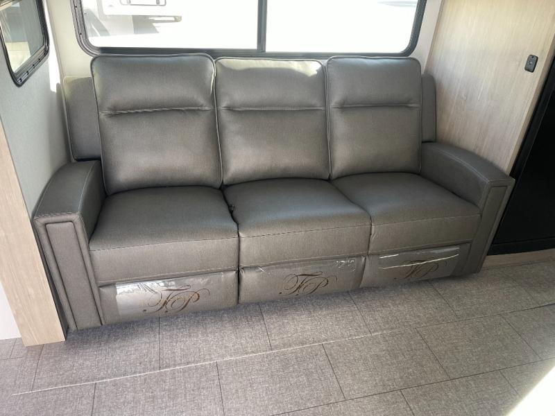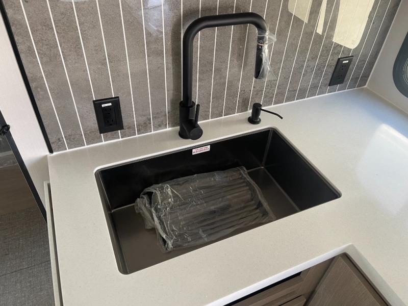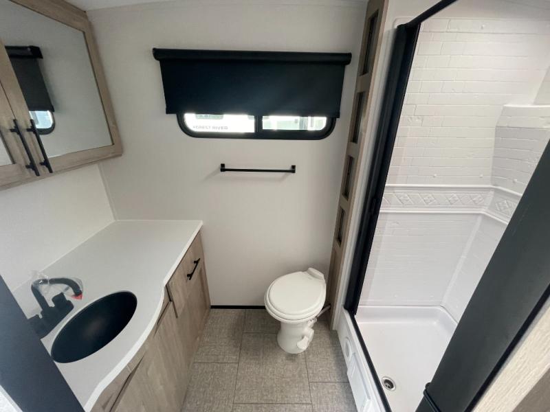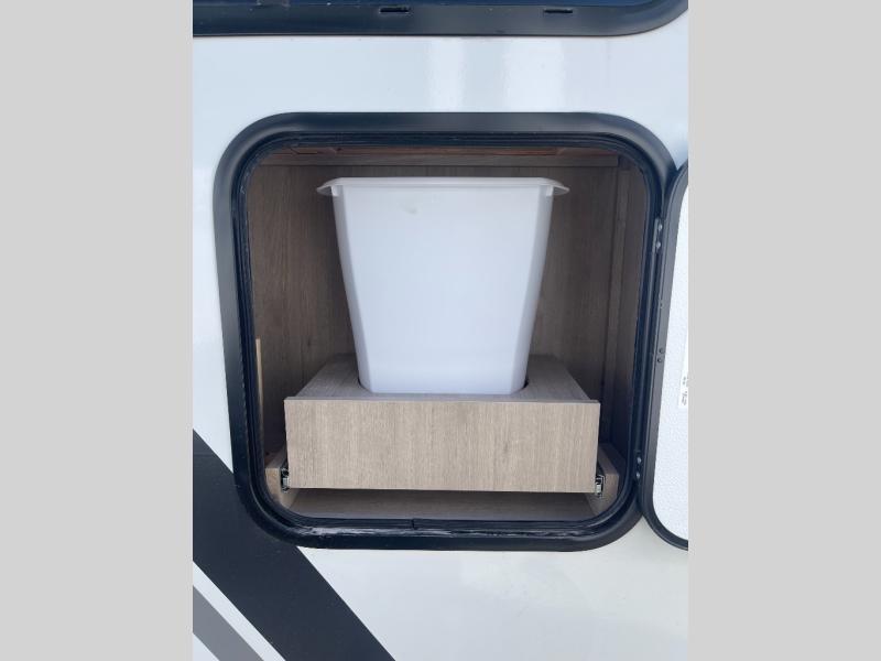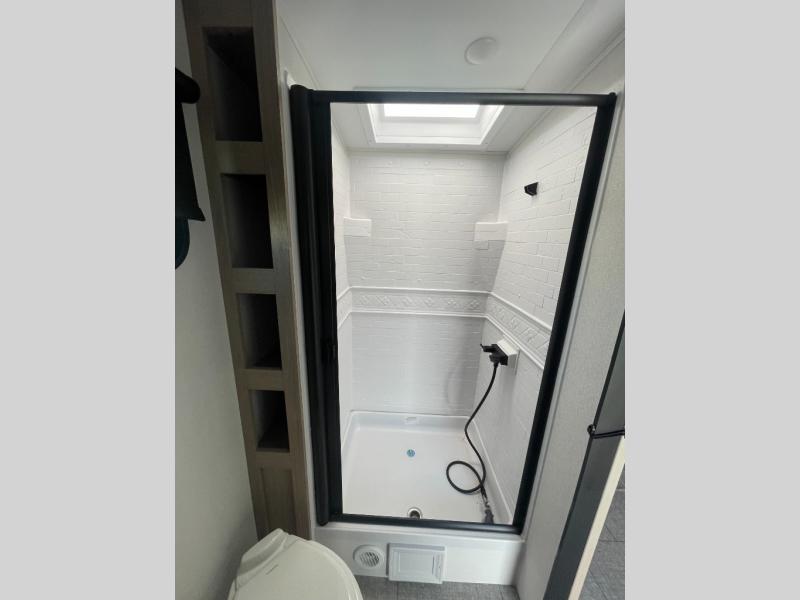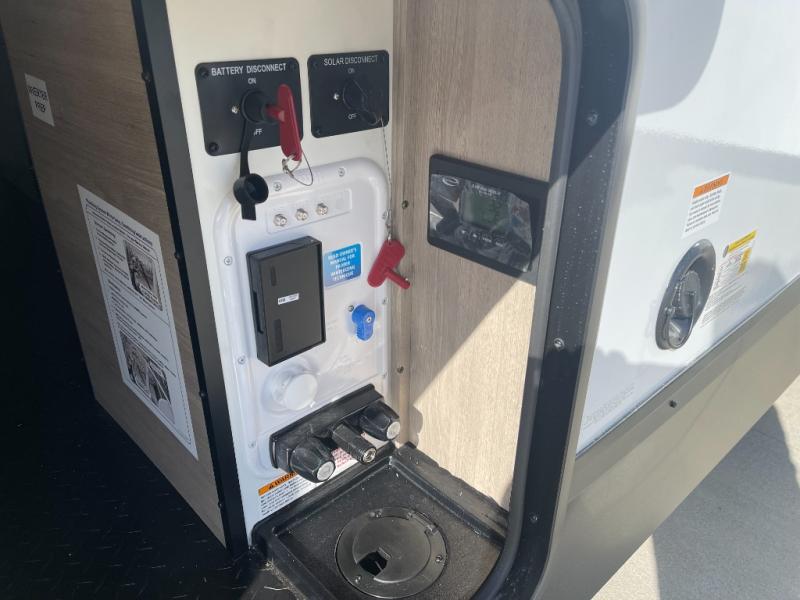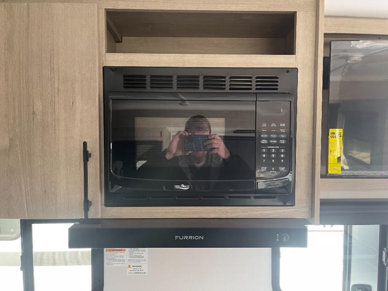 Escape to adventure with this fantastic travel trailer! The private bedroom features a plush 60" x 80" queen bed, spacious wardrobe, and TV prep for entertainment. The kitchen area is fitted with a pull-out pantry, 10 cu. refrigerator, microwave, and three-burner cooktop for gourmet meal prep. Enjoy extra counter space with the flip-up countertop extension, ideal for easy and comfortable cooking. Gather with family and friends at the theater dinette, featuring an LED HDTV for movie nights and game days after that, you can take a relaxing bath in the full rear bathroom, with ample storage. Stay organized on the go with pass-thru storage, 20” x 20” baggage door/trash can storage, and a spacious interior. Enjoy outdoor living under the shade of the 18’ awning, perfect for weekend getaways, or outdoor activities for the adventure-seekers.