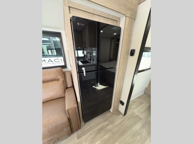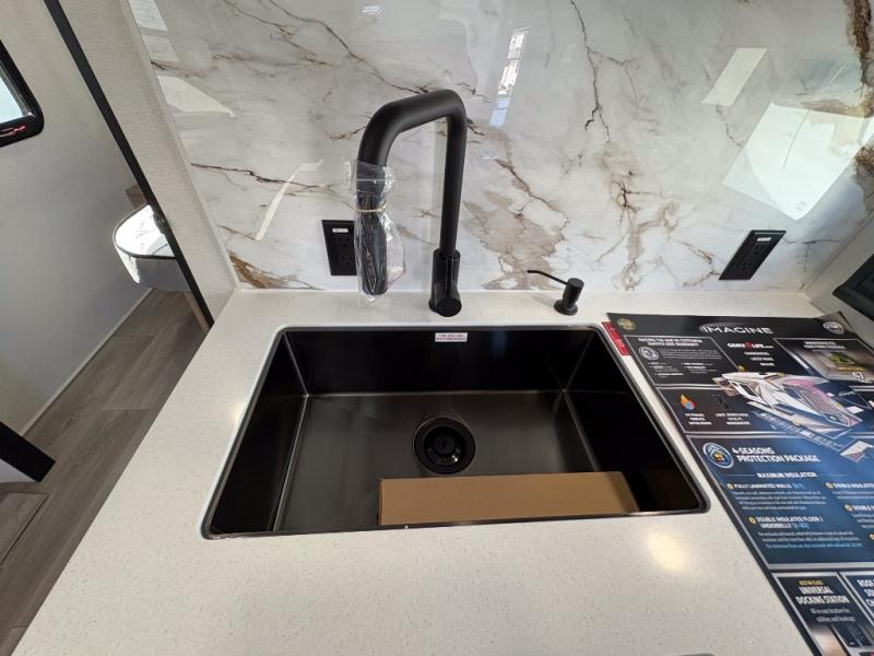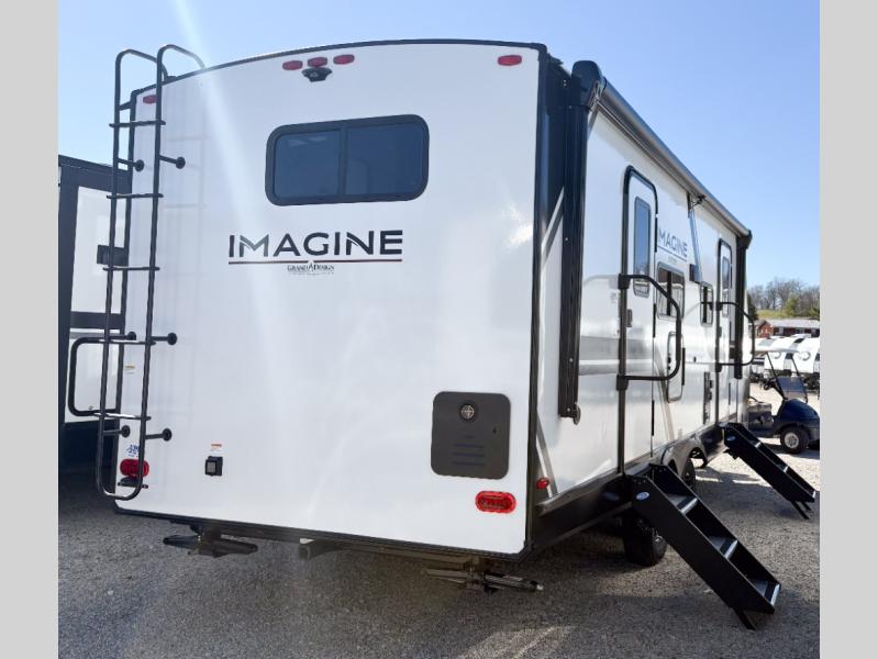 Just imagine leaving the world behind and secluding yourself away with your favorite people in your Grand Design Imagine travel trailer! The Imagine has been designed to enjoy extended season camping and includes a high-capacity furnace, a heated and enclosed underbelly with suspended tanks, a designated heat duct to the subfloor, and a high-density roof insulation with attic vent. You'll have maximum head room on the interior with 81" radius ceilings, and large panoramic windows to let in natural lighting. The exclusive drop-frame pass-through storage compartment is going to allow you to bring along lots of equipment, and the universal docking station is an all-in-one location for utilities and hook-ups. You'll also have oversized tank capacities so that you can fill and empty your tanks less often.