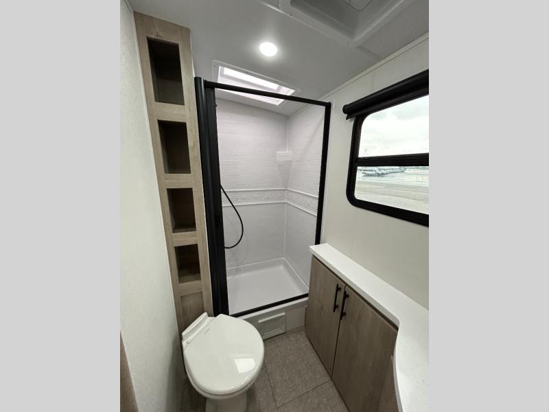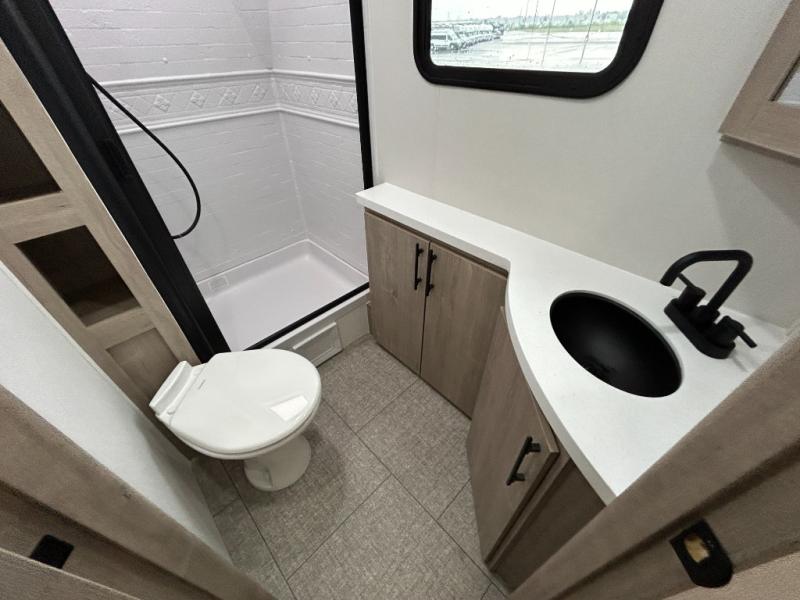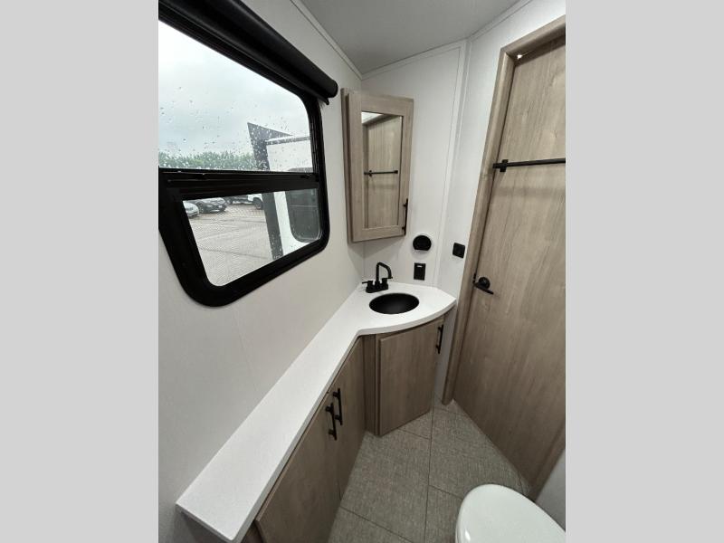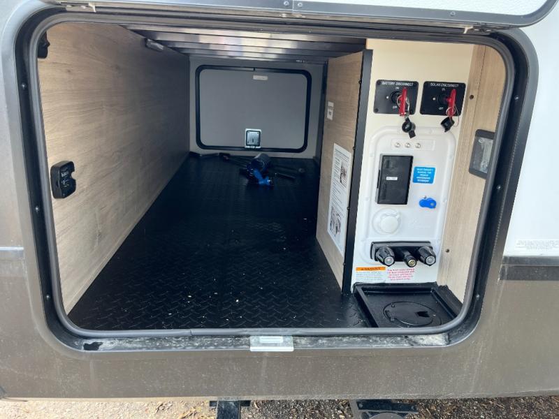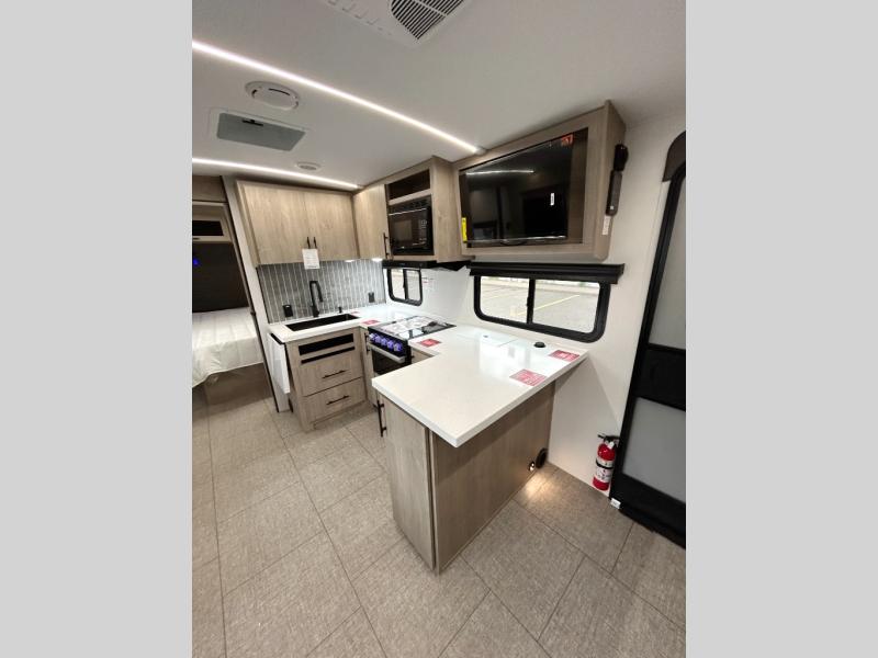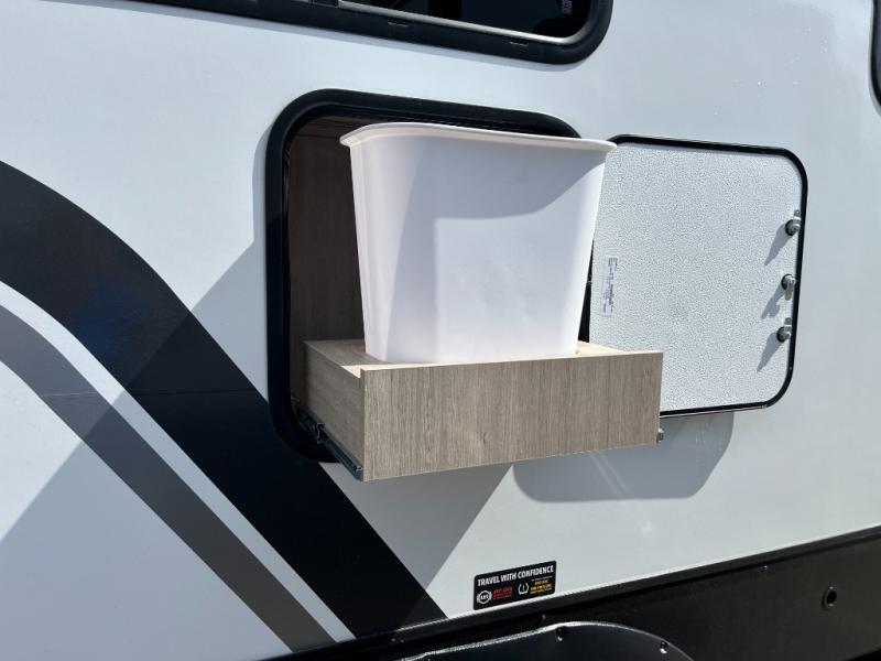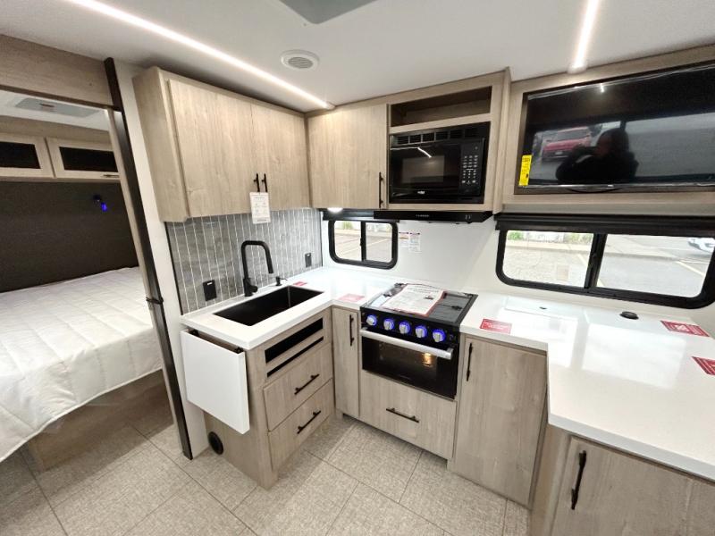 Unleash adventure with this incredible travel trailer! Sleep in style in the serene bedroom, featuring a plush queen bed, spacious wardrobe, and TV prep for entertainment. The kitchen is equipped with a pull-out pantry, 10 cu. refrigerator, microwave, and three-burner cooktop for delicious meal prep. Enjoy extra counter space with the flip-up countertop extension, optimal for easy and comfortable cooking. Family and friends can dine at the U-shaped dinette while watching the LED HDTV for added entertainment. The full bathroom offers a shower, and linen closet. Kids will love the double bunk bed, perfect for taking a nap. On the exterior, you will find the outdoor kitchen, pass-thru storage, and 20” x 20” baggage door/trash can storage, ideal for a better organization of your belongings. Finally, create outdoor activities without worrying about the weather thanks to the 19’ awning.