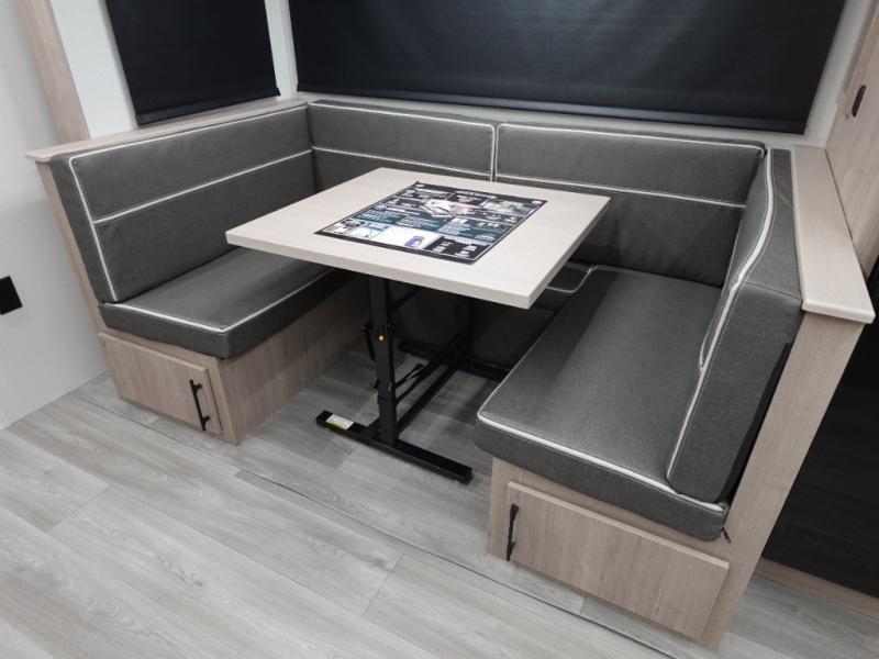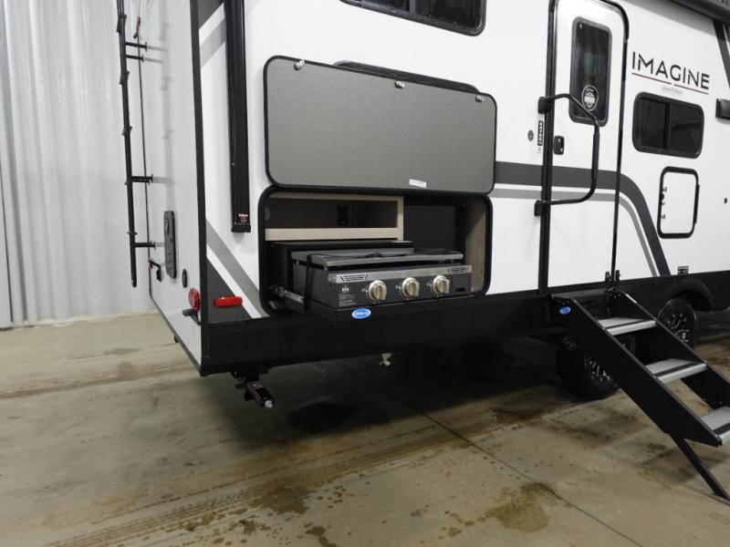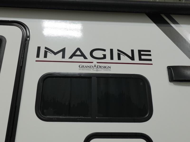 Just imagine leaving the world behind and secluding yourself away with your favorite people in your Grand Design Imagine travel trailer! The Imagine has been designed to enjoy extended season camping and includes a high-capacity furnace, a heated and enclosed underbelly with suspended tanks, a designated heat duct to the subfloor, and a high-density roof insulation with attic vent. You'll have maximum head room on the interior with 81" radius ceilings, and large panoramic windows to let in natural lighting. The exclusive drop-frame pass-through storage compartment is going to allow you to bring along lots of equipment, and the universal docking station is an all-in-one location for utilities and hook-ups. You'll also have oversized tank capacities so that you can fill and empty your tanks less often.