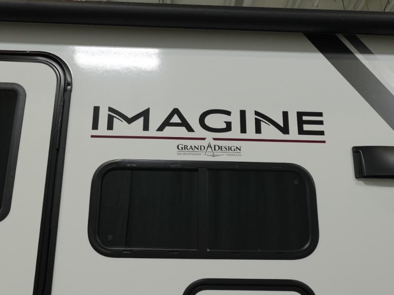Just imagine leaving the world behind and secluding yourself away with your favorite people in your Grand Design Imagine travel trailer! The Imagine has been designed to enjoy extended season camping and includes a high-capacity furnace, a heated and enclosed underbelly with suspended tanks, a designated heat duct to the subfloor, and a high-density roof insulation with attic vent. You'll have maximum head room on the interior with 81" radius ceilings, and large panoramic windows to let in natural lighting. The exclusive drop-frame pass-through storage compartment is going to allow you to bring along lots of equipment, and the universal docking station is an all-in-one location for utilities and hook-ups. You'll also have oversized tank capacities so that you can fill and empty your tanks less often.