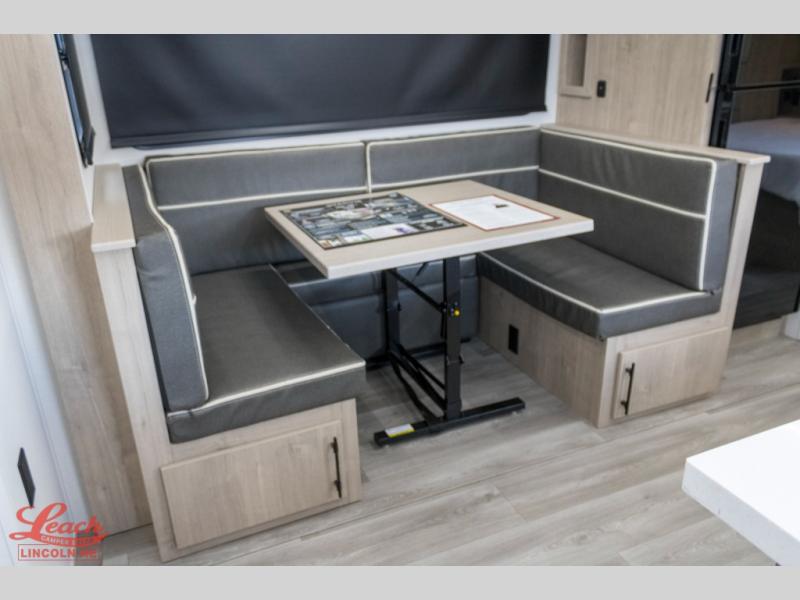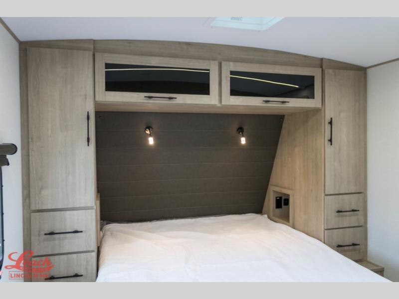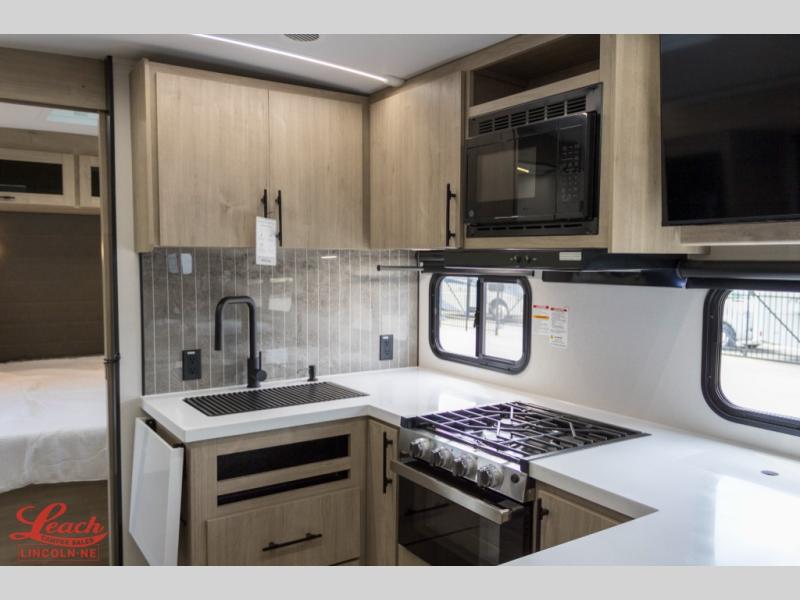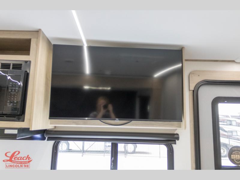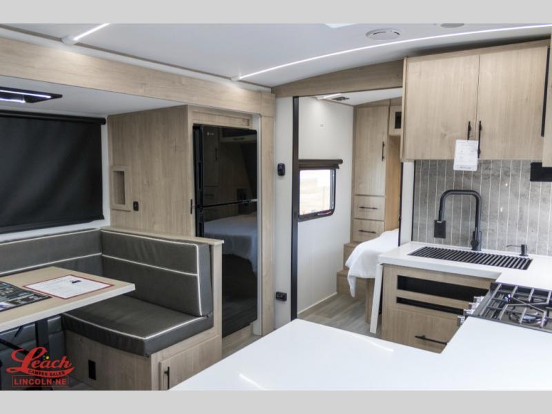 Unleash adventure with this incredible travel trailer! Sleep in style in the serene bedroom, featuring a plush queen bed, spacious wardrobe, and TV prep for entertainment. The kitchen is equipped with a pull-out pantry, 10 cu. refrigerator, microwave, and three-burner cooktop for delicious meal prep. Enjoy extra counter space with the flip-up countertop extension, optimal for easy and comfortable cooking. Family and friends can dine at the U-shaped dinette while watching the LED HDTV for added entertainment. The full bathroom offers a shower, and linen closet. Kids will love the double bunk bed, perfect for taking a nap. On the exterior, you will find the outdoor kitchen, pass-thru storage, and 20” x 20” baggage door/trash can storage, ideal for a better organization of your belongings. Finally, create outdoor activities without worrying about the weather thanks to the 19’ awning.