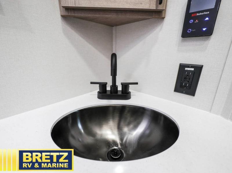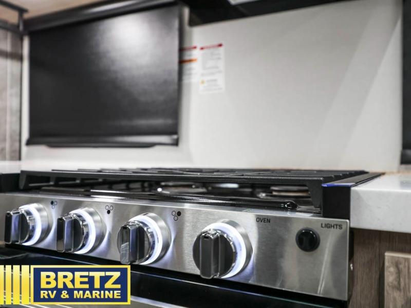 Unleash adventure with this incredible travel trailer! Sleep in style in the serene bedroom, featuring a plush queen bed, spacious wardrobe, and TV prep for entertainment. The kitchen is equipped with a pull-out pantry, 10 cu. refrigerator, microwave, and three-burner cooktop for delicious meal prep. Enjoy extra counter space with the flip-up countertop extension, optimal for easy and comfortable cooking. Family and friends can dine at the U-shaped dinette while watching the LED HDTV for added entertainment. The full bathroom offers a shower, and linen closet. Kids will love the double bunk bed, perfect for taking a nap. On the exterior, you will find the outdoor kitchen, pass-thru storage, and 20” x 20” baggage door/trash can storage, ideal for a better organization of your belongings. Finally, create outdoor activities without worrying about the weather thanks to the 19’ awning.