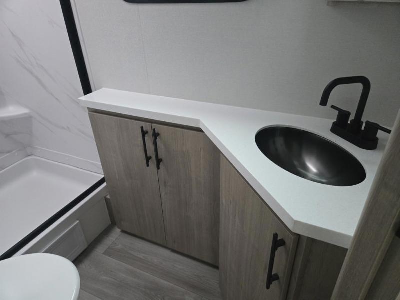 Unleash adventure with this incredible travel trailer! Sleep in style in the serene bedroom, featuring a plush queen bed, spacious wardrobe, and TV prep for entertainment. The kitchen is equipped with a pull-out pantry, 10 cu. refrigerator, microwave, and three-burner cooktop for delicious meal prep. Enjoy extra counter space with the flip-up countertop extension, optimal for easy and comfortable cooking. Family and friends can dine at the U-shaped dinette while watching the LED HDTV for added entertainment. The full bathroom offers a shower, and linen closet. Kids will love the double bunk bed, perfect for taking a nap. On the exterior, you will find the outdoor kitchen, pass-thru storage, and 20” x 20” baggage door/trash can storage, ideal for a better organization of your belongings. Finally, create outdoor activities without worrying about the weather thanks to the 19’ awning.