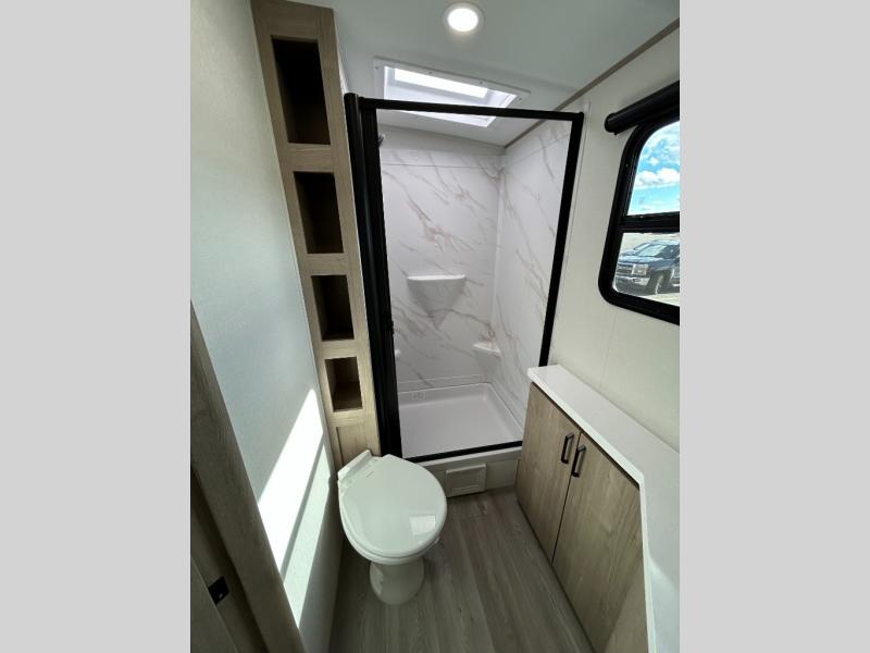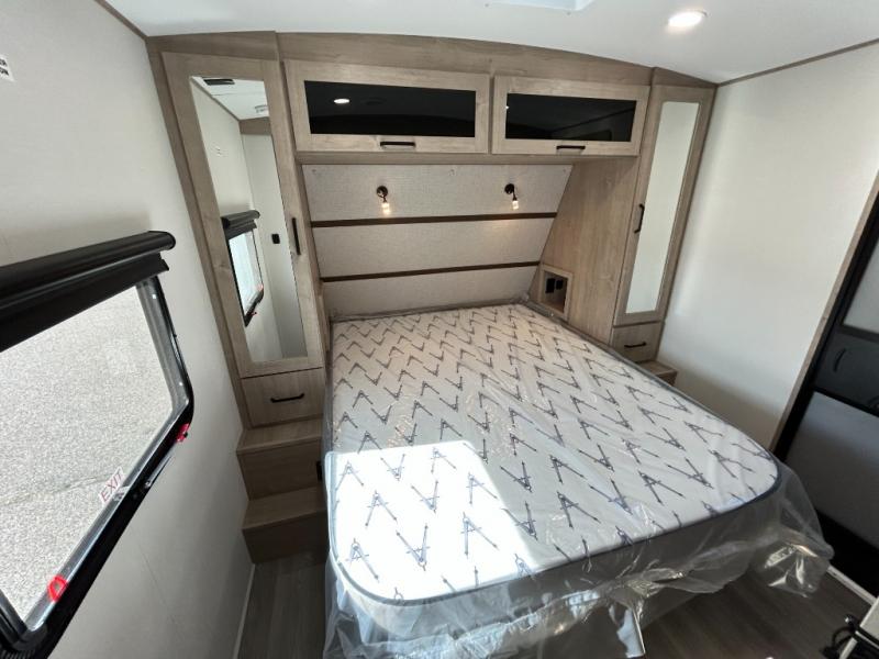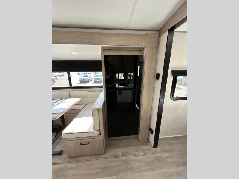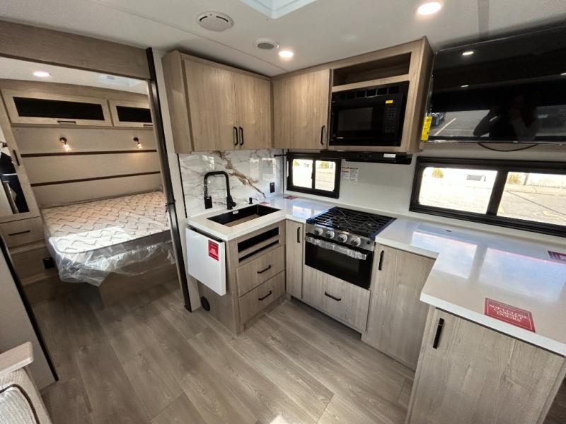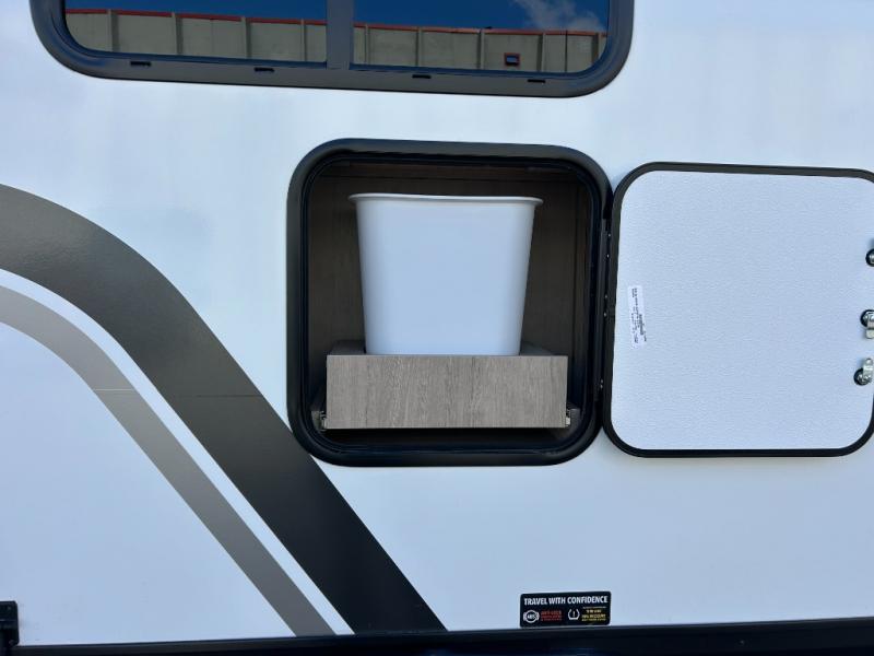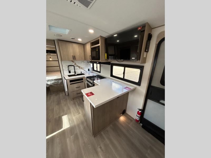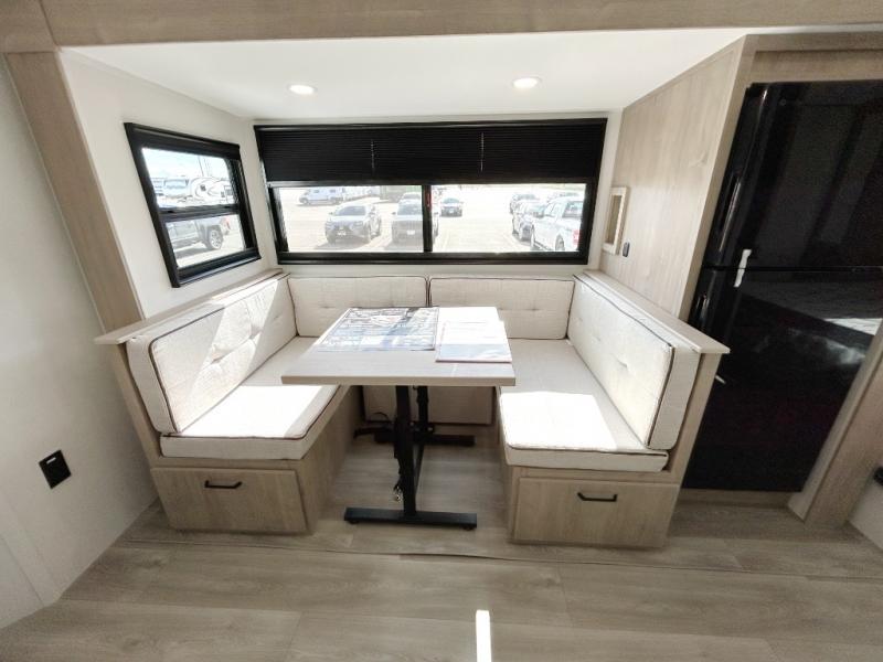 Unleash adventure with this incredible travel trailer! Sleep in style in the serene bedroom, featuring a plush queen bed, spacious wardrobe, and TV prep for entertainment. The kitchen is equipped with a pull-out pantry, 10 cu. refrigerator, microwave, and three-burner cooktop for delicious meal prep. Enjoy extra counter space with the flip-up countertop extension, optimal for easy and comfortable cooking. Family and friends can dine at the U-shaped dinette while watching the LED HDTV for added entertainment. The full bathroom offers a shower, and linen closet. Kids will love the double bunk bed, perfect for taking a nap. On the exterior, you will find the outdoor kitchen, pass-thru storage, and 20” x 20” baggage door/trash can storage, ideal for a better organization of your belongings. Finally, create outdoor activities without worrying about the weather thanks to the 19’ awning.