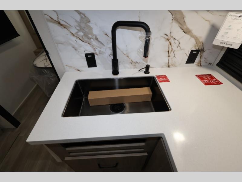 Just imagine leaving the world behind and secluding yourself away with your favorite people in your Grand Design Imagine travel trailer! The Imagine has been designed to enjoy camping and includes a high-capacity furnace, a heated and enclosed underbelly with suspended tanks, a designated heat duct to the subfloor, and a high-density roof insulation with attic vent. You'll have a large panoramic window to let natural lighting in and an adjustable Power Awning with LED Lights for those night gatherings. The exclusive drop-frame pass-through storage compartment is going to allow you to bring along lots of equipment, and the universal docking station is an all-in-one location for utilities and hook-ups. You'll also have oversized tank capacities so that you can fill and empty your tanks less often.
