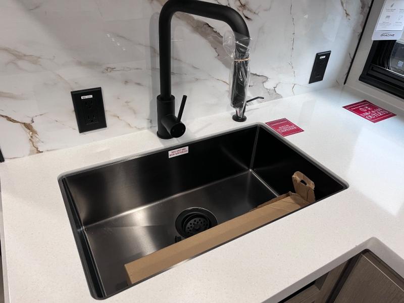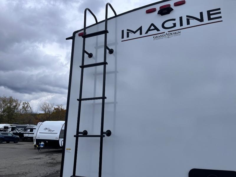 Just imagine leaving the world behind and secluding yourself away with your favorite people in your Grand Design Imagine travel trailer! The Imagine has been designed to enjoy extended season camping and includes a high-capacity furnace, a heated and enclosed underbelly with suspended tanks, a designated heat duct to the subfloor, and a high-density roof insulation with attic vent. You'll have maximum head room on the interior with 81" radius ceilings, and large panoramic windows to let in natural lighting. The exclusive drop-frame pass-through storage compartment is going to allow you to bring along lots of equipment, and the universal docking station is an all-in-one location for utilities and hook-ups. You'll also have oversized tank capacities so that you can fill and empty your tanks less often.