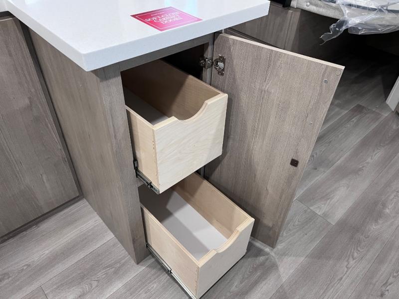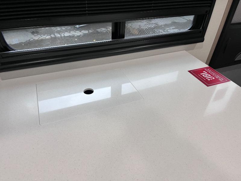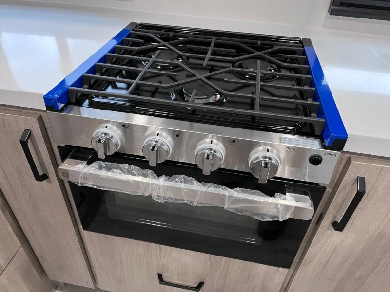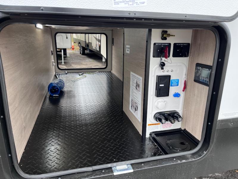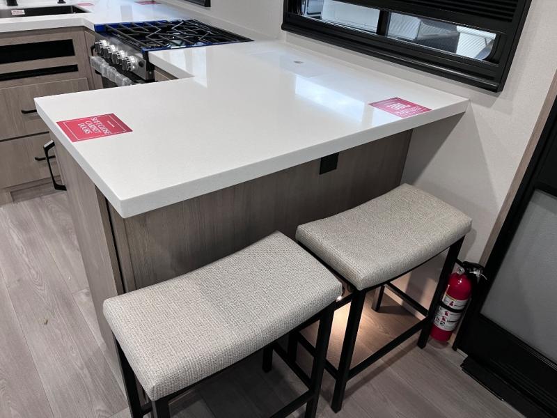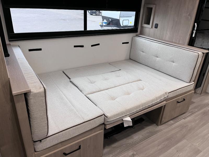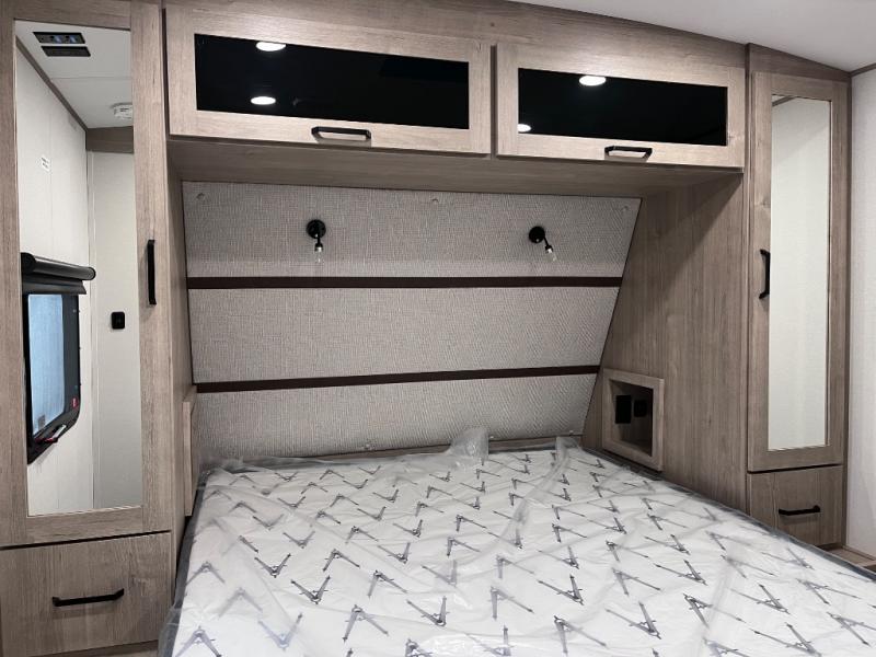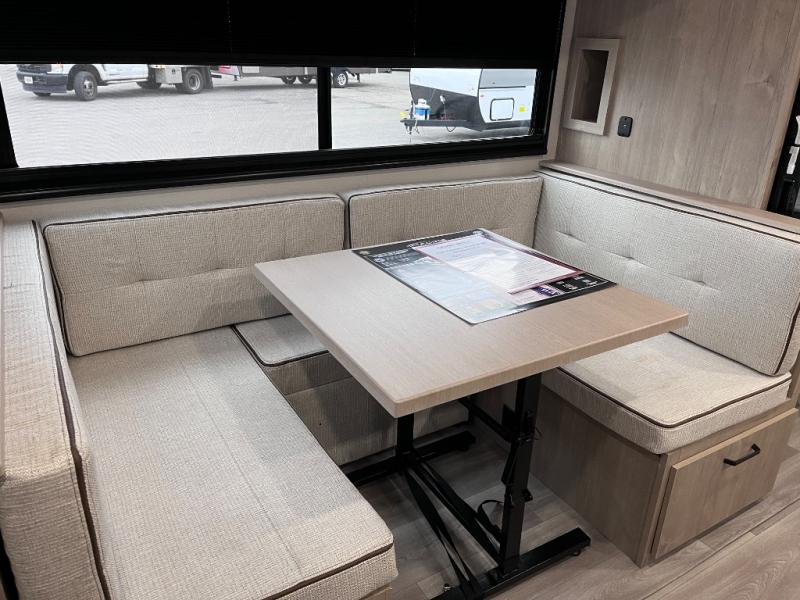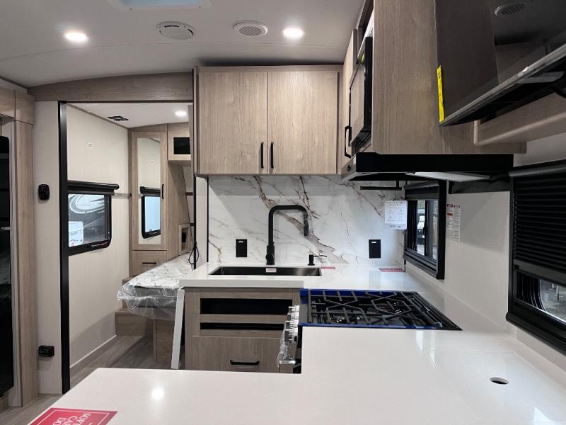 Unleash adventure with this incredible travel trailer! Sleep in style in the serene bedroom, featuring a plush queen bed, spacious wardrobe, and TV prep for entertainment. The kitchen is equipped with a pull-out pantry, 10 cu. refrigerator, microwave, and three-burner cooktop for delicious meal prep. Enjoy extra counter space with the flip-up countertop extension, optimal for easy and comfortable cooking. Family and friends can dine at the U-shaped dinette while watching the LED HDTV for added entertainment. The full bathroom offers a shower, and linen closet. Kids will love the double bunk bed, perfect for taking a nap. On the exterior, you will find the outdoor kitchen, pass-thru storage, and 20” x 20” baggage door/trash can storage, ideal for a better organization of your belongings. Finally, create outdoor activities without worrying about the weather thanks to the 19’ awning.