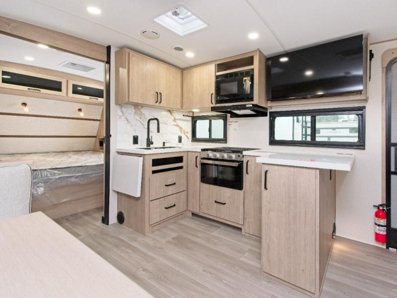 Outside, the Imagine 2470BH continues to impress. Fire up the outdoor griddle for cookouts and keep cold drinks within reach in the small exterior refrigerator.