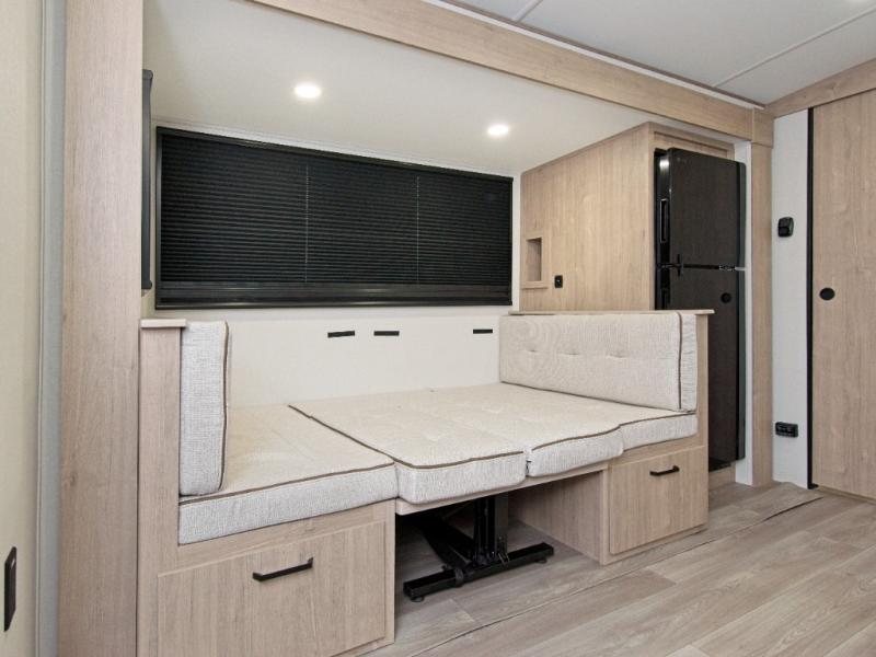 Your family or guests will enjoy gathering around the U-shaped dinette, ideal for dining, playing games, or watching TV together. The full bathroom features a spacious shower and a convenient linen closet for added storage.
