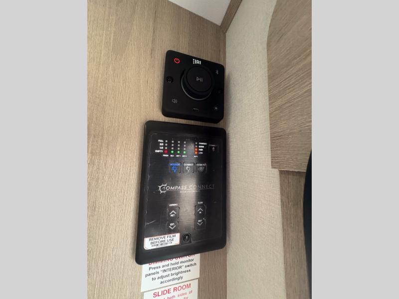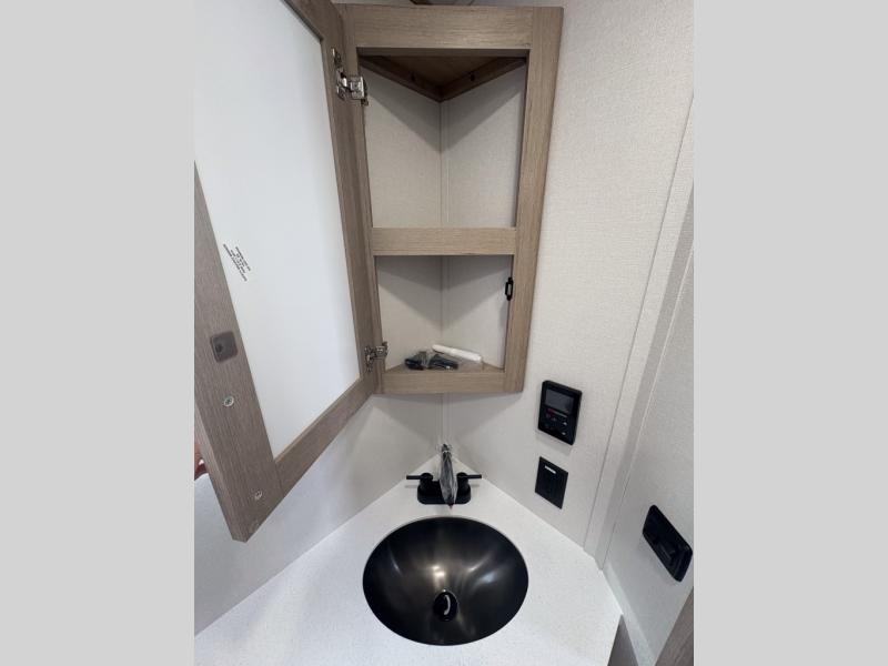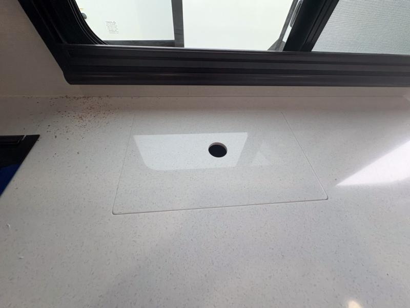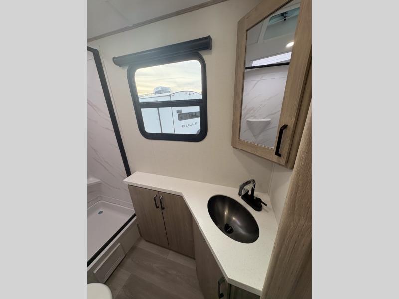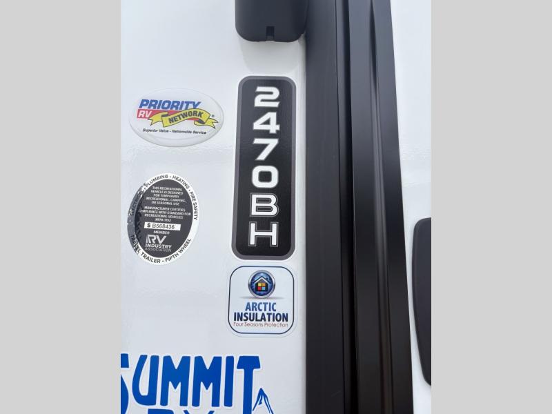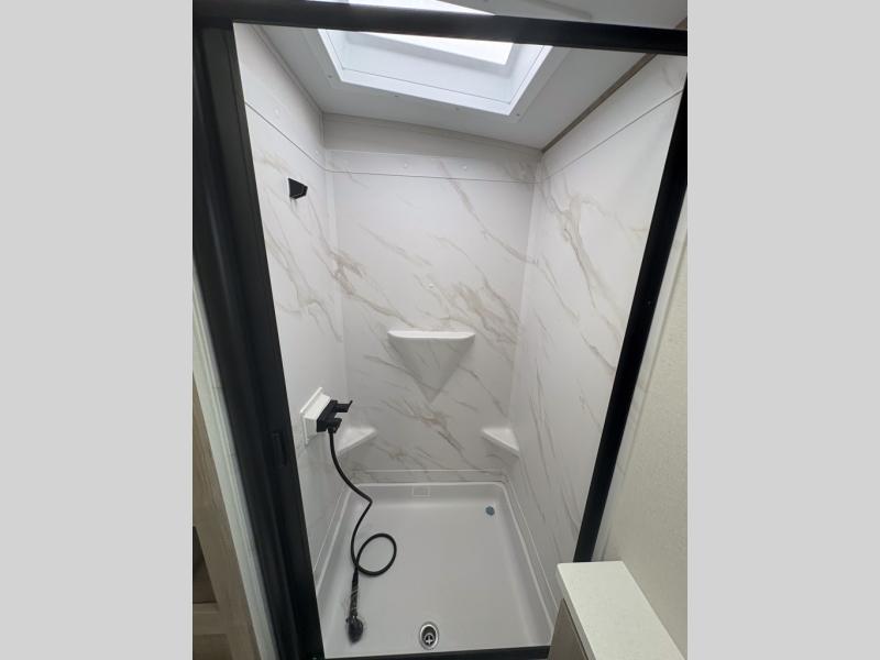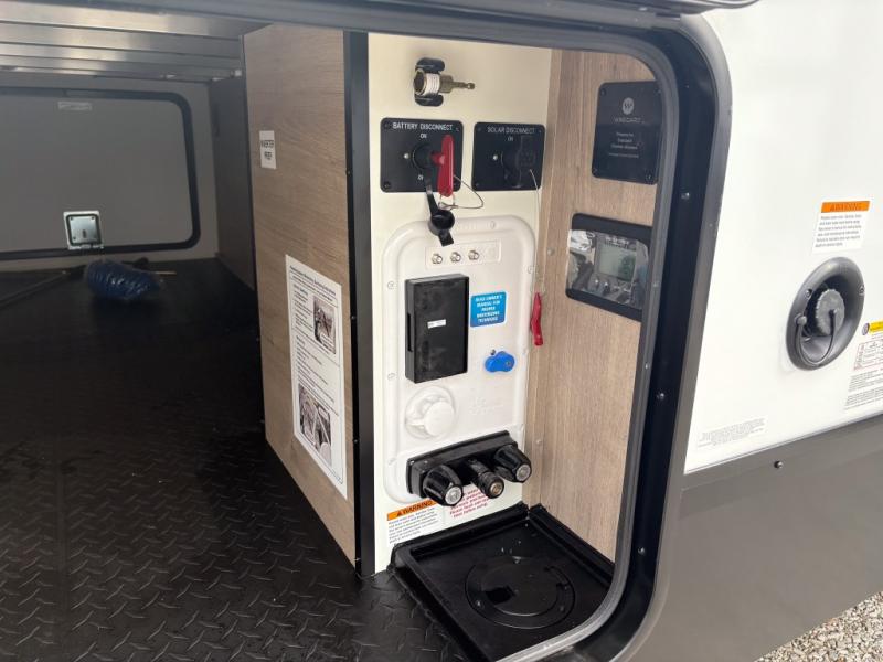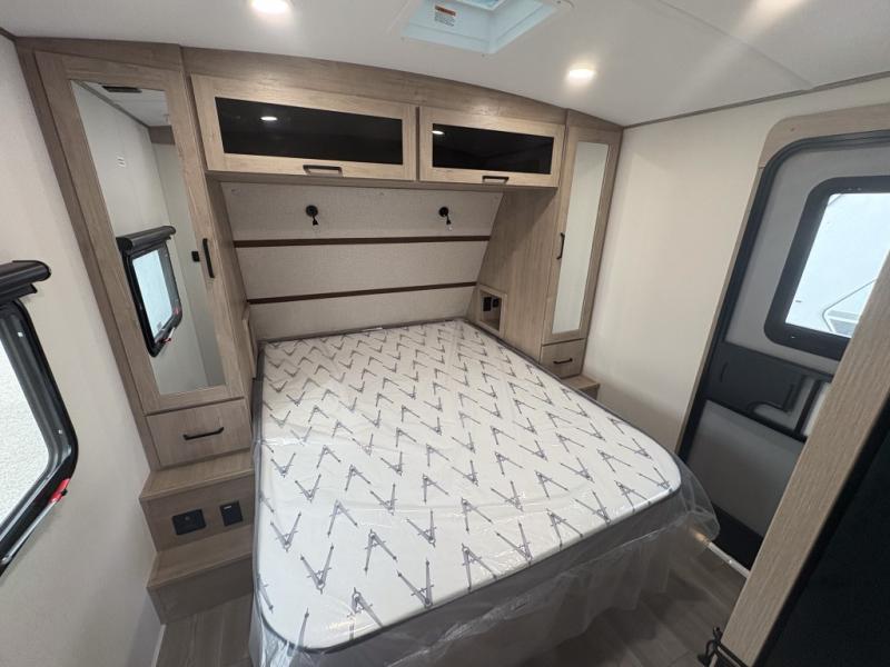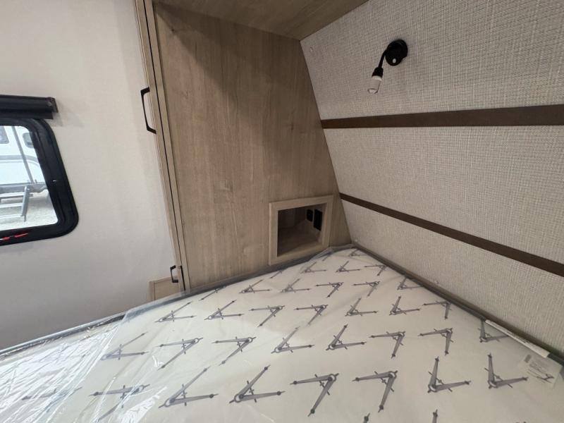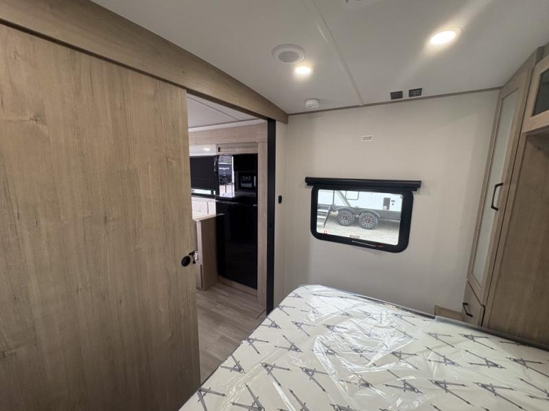 Unleash adventure with this incredible travel trailer! Sleep in style in the serene bedroom, featuring a plush queen bed, spacious wardrobe, and TV prep for entertainment. The kitchen is equipped with a pull-out pantry, 10 cu. refrigerator, microwave, and three-burner cooktop for delicious meal prep. Enjoy extra counter space with the flip-up countertop extension, optimal for easy and comfortable cooking. Family and friends can dine at the U-shaped dinette while watching TV for added entertainment. The full bathroom offers a shower, and linen closet. Kids will love the double bunk bed, perfect for taking a nap. On the exterior, you will find the outdoor griddle and a small refrigerator, pass-thru storage, and 20” x 20” baggage door/trash can storage, ideal for a better organization of your belongings. Finally, create outdoor activities without worrying about the weather thanks to the adjustable power awning with LED lights