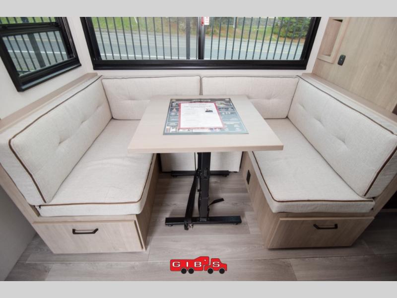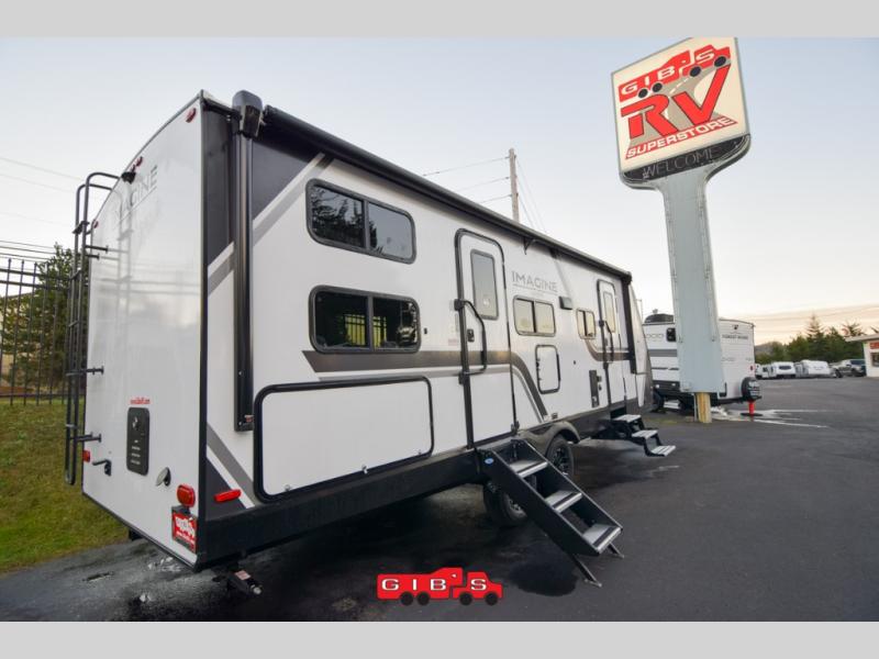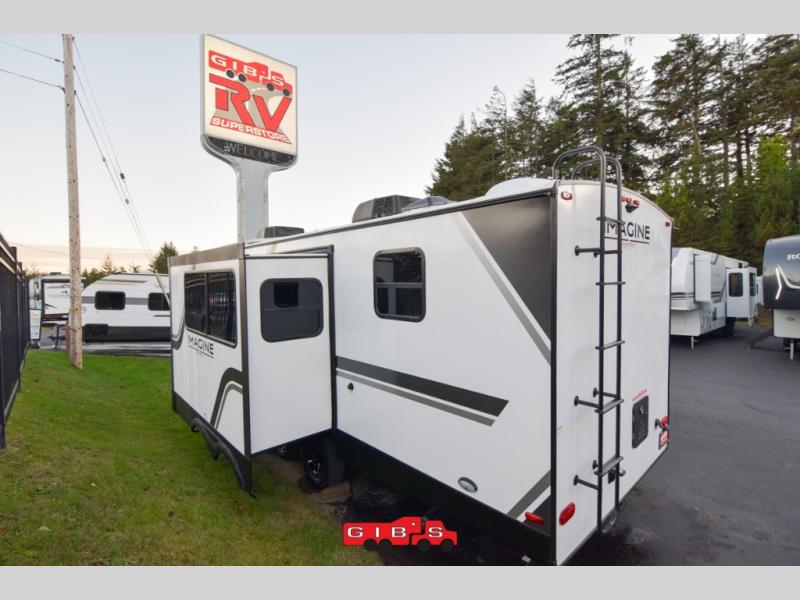 Just imagine leaving the world behind and secluding yourself away with your favorite people in your Grand Design Imagine travel trailer! The Imagine has been designed to enjoy camping and includes a high-capacity furnace, a heated and enclosed underbelly with suspended tanks, a designated heat duct to the subfloor, and a high-density roof insulation with attic vent. You'll have a large panoramic window to let natural lighting in and an adjustable Power Awning with LED Lights for those night gatherings. The exclusive drop-frame pass-through storage compartment is going to allow you to bring along lots of equipment, and the universal docking station is an all-in-one location for utilities and hook-ups. You'll also have oversized tank capacities so that you can fill and empty your tanks less often.