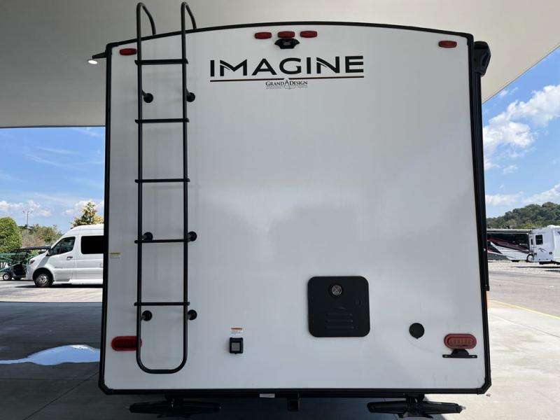 Just imagine leaving the world behind and secluding yourself away with your favorite people in your Grand Design Imagine travel trailer! The Imagine has been designed to enjoy camping and includes a high-capacity furnace, a heated and enclosed underbelly with suspended tanks, a designated heat duct to the subfloor, and a high-density roof insulation with attic vent. You'll have a large panoramic window to let natural lighting in and an adjustable Power Awning with LED Lights for those night gatherings. The exclusive drop-frame pass-through storage compartment is going to allow you to bring along lots of equipment, and the universal docking station is an all-in-one location for utilities and hook-ups. You'll also have oversized tank capacities so that you can fill and empty your tanks less often.