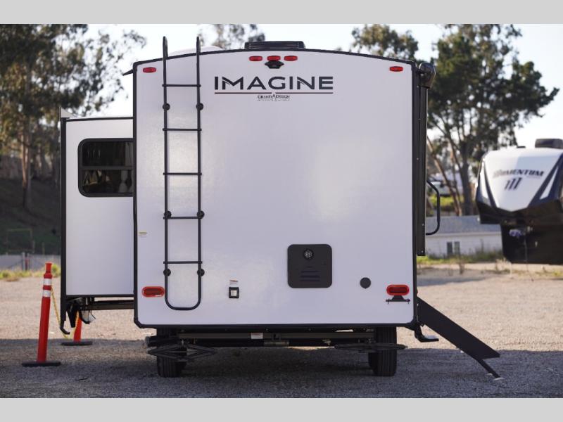Just imagine leaving the world behind and secluding yourself away with your favorite people in your Grand Design Imagine travel trailer! The Imagine has been designed to enjoy camping and includes a high-capacity furnace, a heated and enclosed underbelly with suspended tanks, a designated heat duct to the subfloor, and a high-density roof insulation with attic vent. You'll have a large panoramic window to let natural lighting in and an adjustable Power Awning with LED Lights for those night gatherings. The exclusive drop-frame pass-through storage compartment is going to allow you to bring along lots of equipment, and the universal docking station is an all-in-one location for utilities and hook-ups. You'll also have oversized tank capacities so that you can fill and empty your tanks less often.