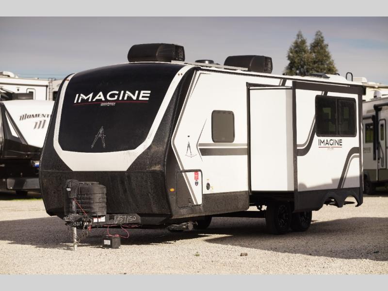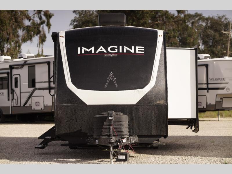 Just imagine leaving the world behind and secluding yourself away with your favorite people in your Grand Design Imagine travel trailer! The Imagine has been designed to enjoy camping and includes a high-capacity furnace, a heated and enclosed underbelly with suspended tanks, a designated heat duct to the subfloor, and a high-density roof insulation with attic vent. You'll have a large panoramic window to let natural lighting in and an adjustable Power Awning with LED Lights for those night gatherings. The exclusive drop-frame pass-through storage compartment is going to allow you to bring along lots of equipment, and the universal docking station is an all-in-one location for utilities and hook-ups. You'll also have oversized tank capacities so that you can fill and empty your tanks less often.