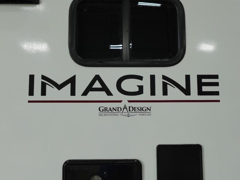 Just imagine leaving the world behind and secluding yourself away with your favorite people in your Grand Design Imagine travel trailer! The Imagine has been designed to enjoy extended season camping and includes a high-capacity furnace, a heated and enclosed underbelly with suspended tanks, a designated heat duct to the subfloor, and a high-density roof insulation with attic vent. You'll have maximum head room on the interior with 81" radius ceilings, and large panoramic windows to let in natural lighting. The exclusive drop-frame pass-through storage compartment is going to allow you to bring along lots of equipment, and the universal docking station is an all-in-one location for utilities and hook-ups. You'll also have oversized tank capacities so that you can fill and empty your tanks less often.