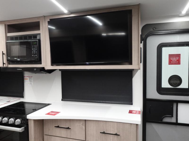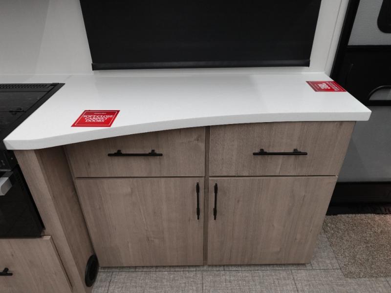 You will have an amazing amount of fun in this Imagine travel trailer! There is a tri-fold sofa and U-shaped dinette with removable ottoman that you can relax on while you watch the LED HDTV, and this trailer has two entry doors so that you can come and go as you please. The private bedroom contains the second entry door, so you can quickly head inside to grab a sweatshirt when you need one. While you're outside, you'll have a 21' power awning to protect you, and there is a LP quick connect, and spray port to make your camping life easier. The interior walk-through bathroom connects the bedroom to the rest of the trailer, and the kitchen has a countertop extension so that you can chop veggies on extra counter space.