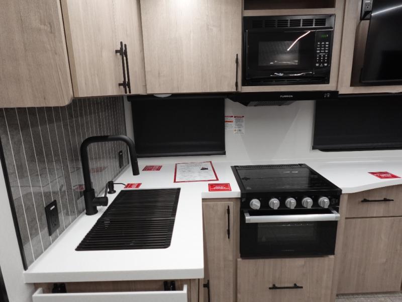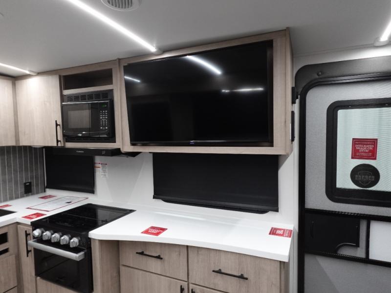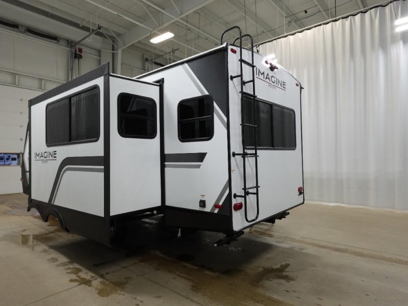 You will have an amazing amount of fun in this Imagine travel trailer! There is a tri-fold sofa and U-shaped dinette with removable ottoman that you can relax on while you watch the LED HDTV, and this trailer has two entry doors so that you can come and go as you please. The private bedroom contains the second entry door, so you can quickly head inside to grab a sweatshirt when you need one. While you're outside, you'll have a 21' power awning to protect you, and there is a LP quick connect, and spray port to make your camping life easier. The interior walk-through bathroom connects the bedroom to the rest of the trailer, and the kitchen has a countertop extension so that you can chop veggies on extra counter space.