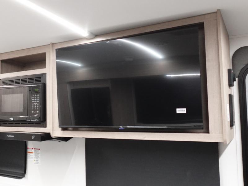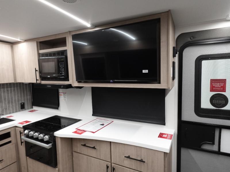 You will have an amazing amount of fun in this Imagine travel trailer! There is a sofa and U-shaped dinette with removable ottoman that you can relax on while you watch the LED HDTV, and this trailer has two entry doors so that you can come and go as you please. The private bedroom contains the second entry door, so you can quickly head inside to grab a sweatshirt when you need one. While you're outside, you'll have a 21' power awning to protect you, and there is a LP quick connect, and spray port to make your camping life easier. The interior walk-through bathroom connects the bedroom to the rest of the trailer, and the kitchen has a countertop extension so that you can chop veggies on extra counter space.