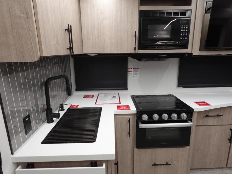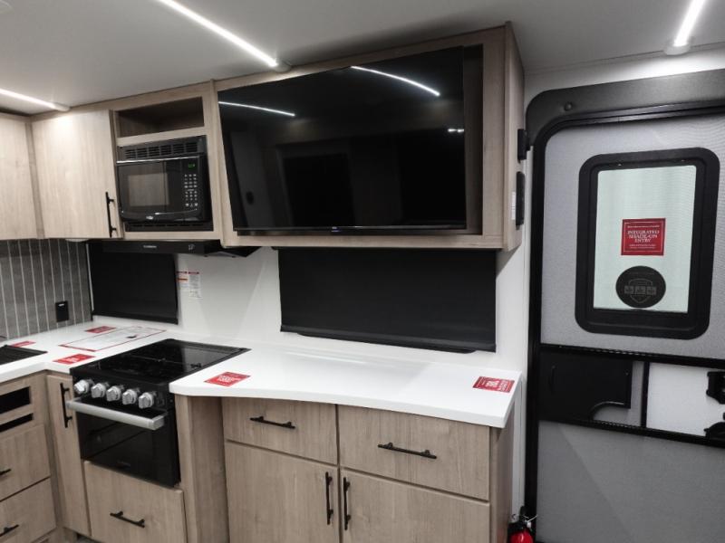 You will have an amazing amount of fun in this Imagine travel trailer! There is a sofa and U-shaped dinette with removable ottoman that you can relax on while you watch the LED HDTV, and this trailer has two entry doors so that you can come and go as you please. The private bedroom contains the second entry door, so you can quickly head inside to grab a sweatshirt when you need one. While you're outside, you'll have a 21' power awning to protect you, and there is a LP quick connect, and spray port to make your camping life easier. The interior walk-through bathroom connects the bedroom to the rest of the trailer, and the kitchen has a countertop extension so that you can chop veggies on extra counter space.