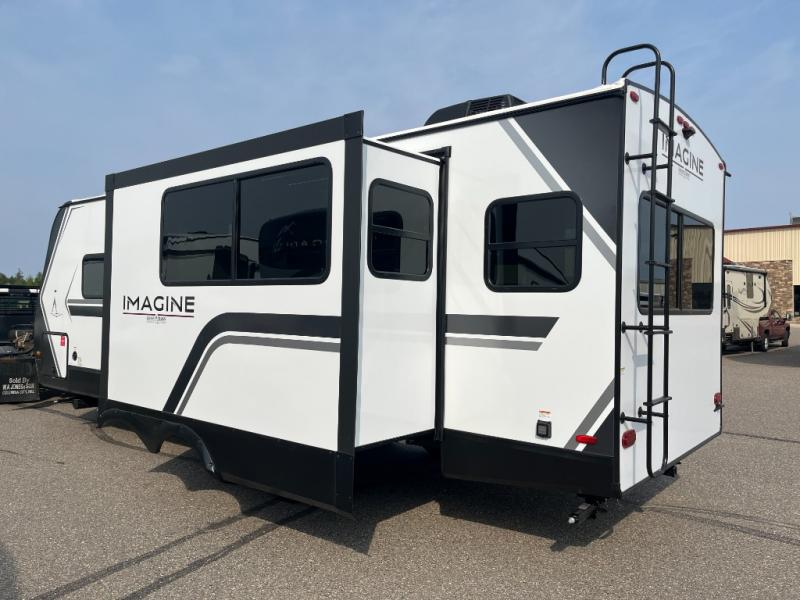 You will have an amazing amount of fun in this Imagine travel trailer! There is theater seating and U-shaped dinette with removable ottoman that you can relax on while you watch the LED HDTV, and this trailer has two entry doors so that you can come and go as you please. The private bedroom contains the second entry door, so you can quickly head inside to grab a sweatshirt when you need one. While you're outside, you'll have a 21' power awning to protect you, and there is a LP quick connect, and spray port to make your camping life easier. The interior walk-through bathroom connects the bedroom to the rest of the trailer, and the kitchen has a countertop extension so that you can chop veggies on extra counter space.