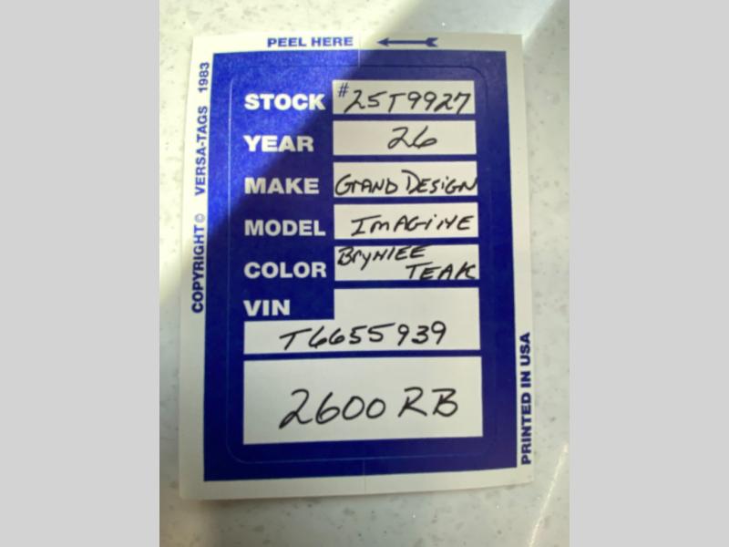 New 2026 Grand Design Imagine 2600RB Travel Trailer