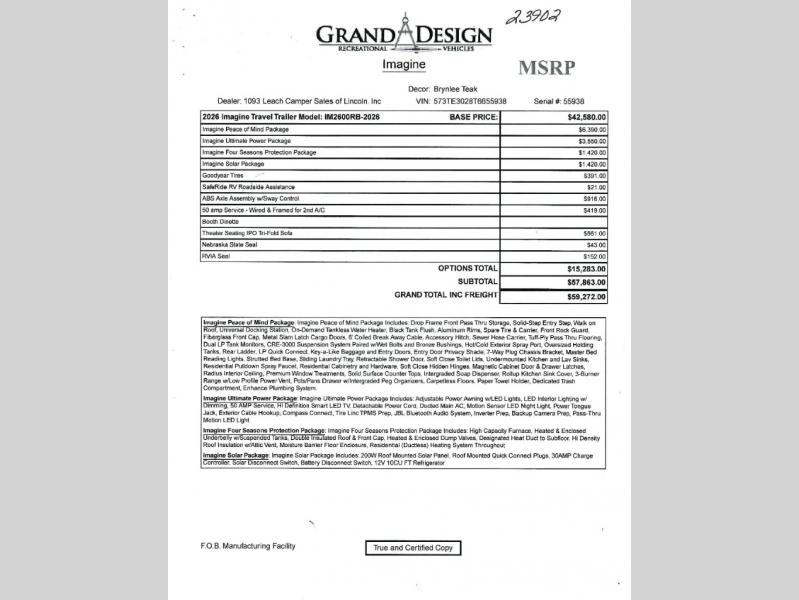 The team here is awesome to work with. They went above and beyond to get us out the door even faster than usual. Service is great. Sales team is friendly and not pushy. Management and finance were great. This is a great place to purchase your RV from. - Christopher