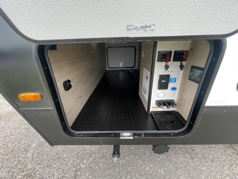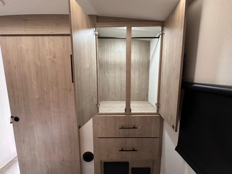 With this Imagine travel trailer, you can work while you're on the road because it offers you a desk in the main living area. You won't have to miss out on the action since you'll be right next to the booth dinette and tri-fold sofa, and there is even a pantry directly to the left of the desk for you to grab a quick snack while you're working. Once you're done with work, you can relax on the tri-fold sofa while you watch the telescoping LED HDTV, and the private bedroom offers you a 60" x 80" queen bed to rest on when you're ready to call it a night.