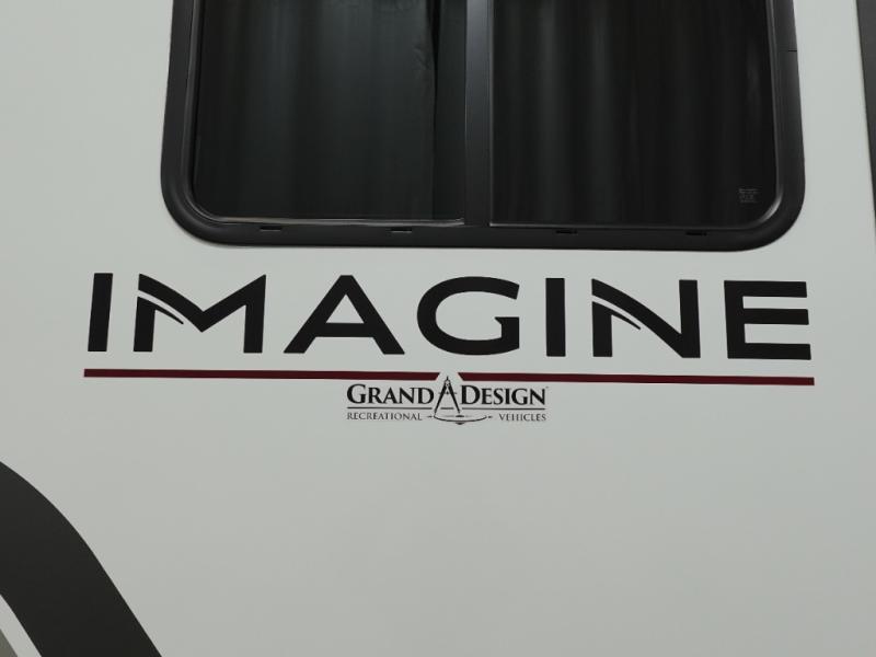 Just imagine leaving the world behind and secluding yourself away with your favorite people in your Grand Design Imagine travel trailer! The Imagine has been designed to enjoy extended season camping and includes a high-capacity furnace, a heated and enclosed underbelly with suspended tanks, a designated heat duct to the subfloor, and a high-density roof insulation with attic vent. You'll have maximum head room on the interior with 81" radius ceilings, and large panoramic windows to let in natural lighting. The exclusive drop-frame pass-through storage compartment is going to allow you to bring along lots of equipment, and the universal docking station is an all-in-one location for utilities and hook-ups. You'll also have oversized tank capacities so that you can fill and empty your tanks less often.
