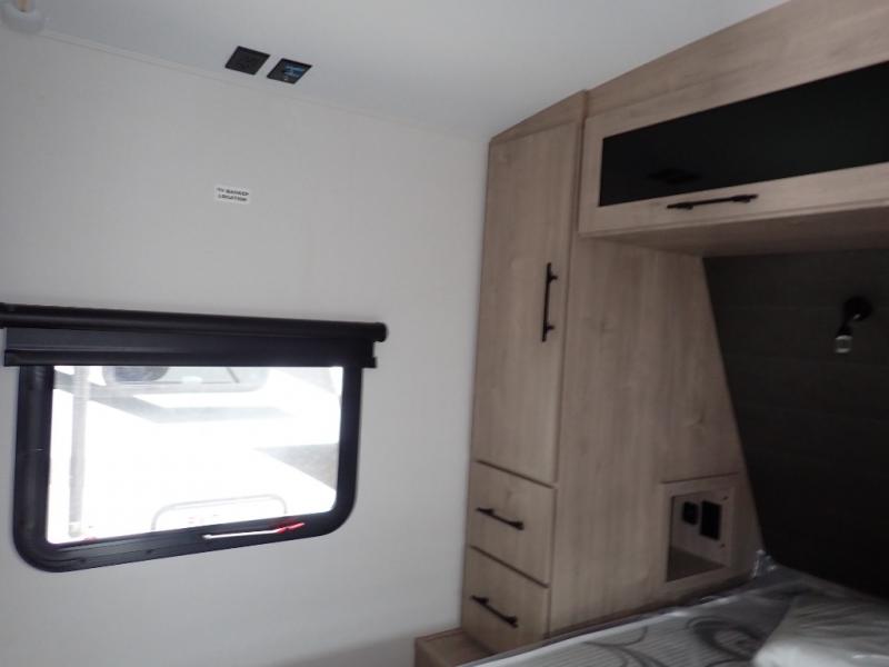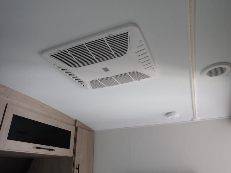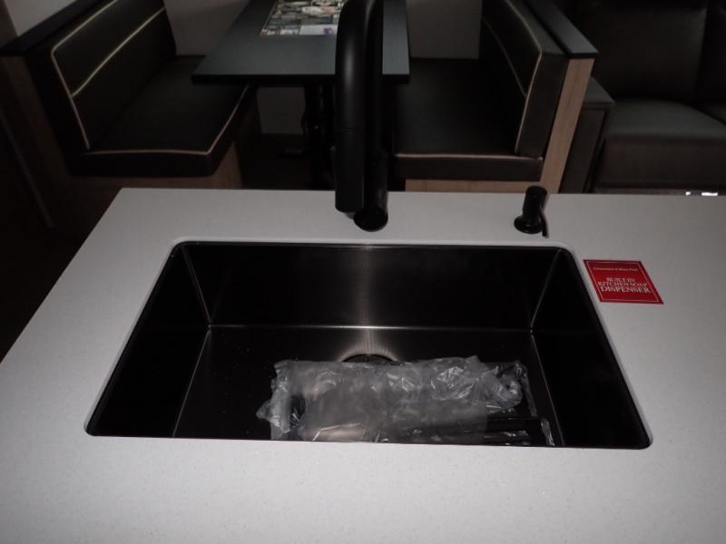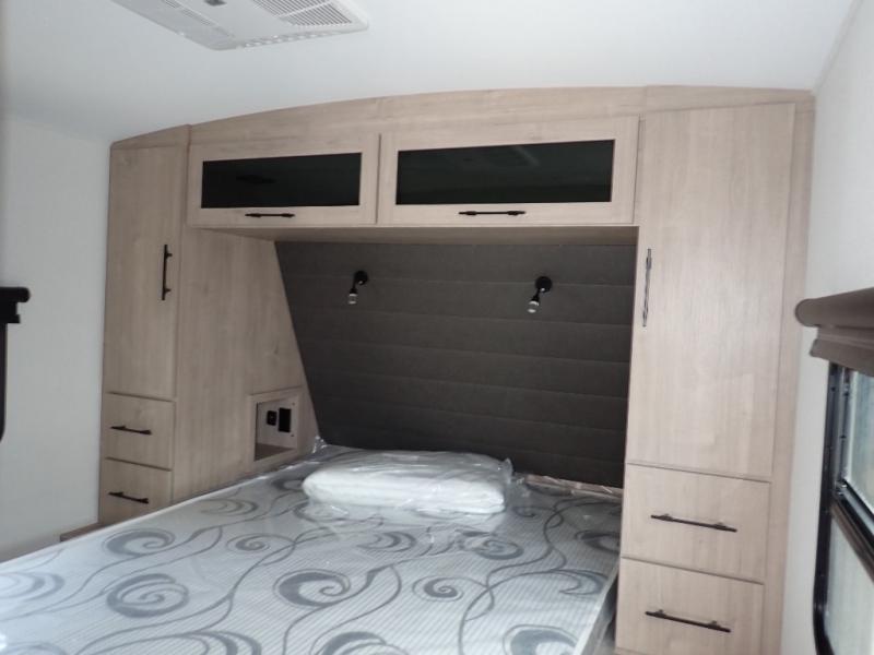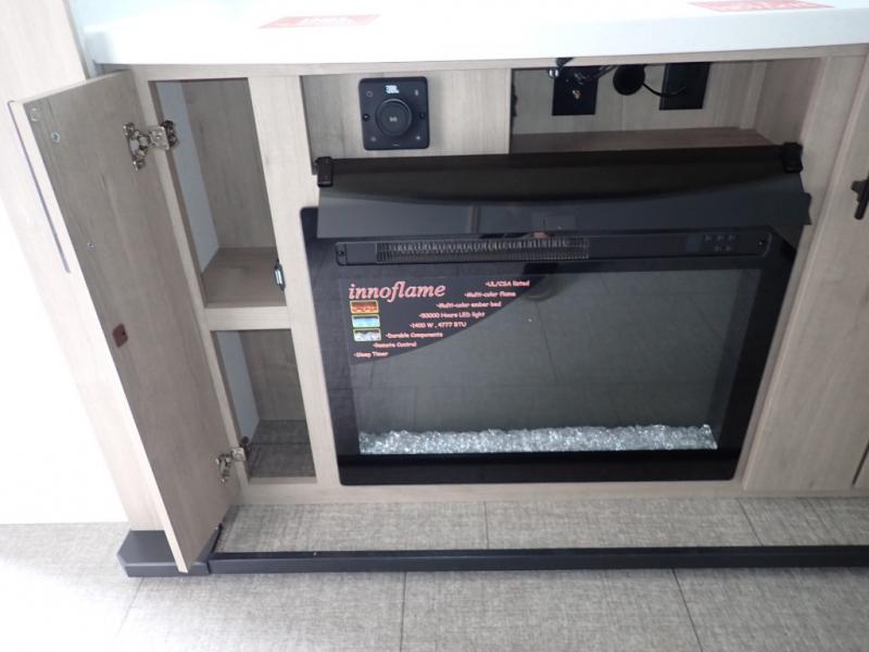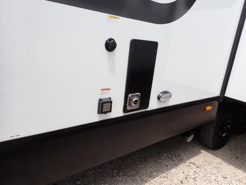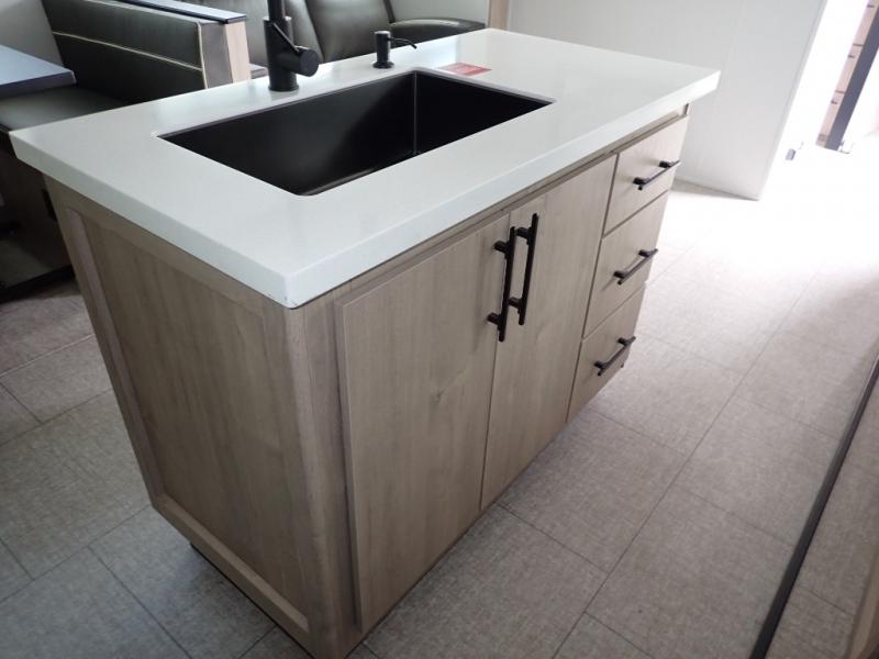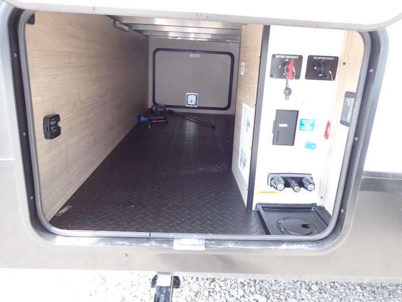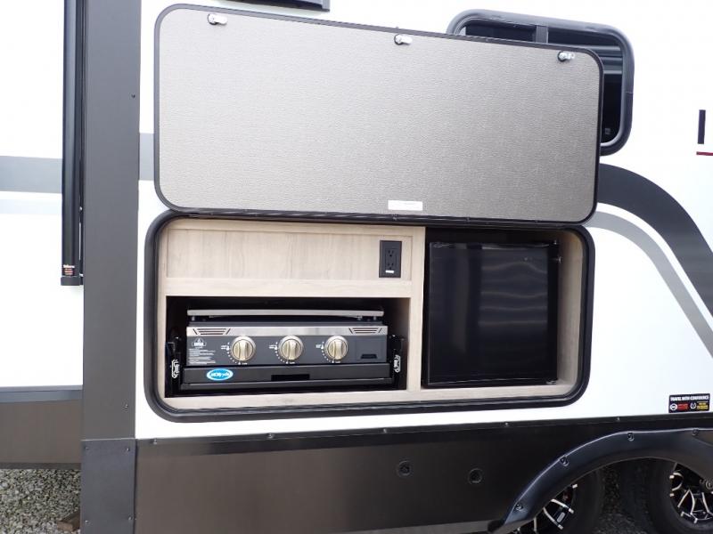 With this Imagine travel trailer, you can work while you're on the road because it offers you a desk in the main living area. You won't have to miss out on the action since you'll be right next to the booth dinette and tri-fold sofa, and there is even a pantry directly to the left of the desk for you to grab a quick snack while you're working. Once you're done with work, you can relax on the tri-fold sofa while you watch the telescoping LED HDTV, and the private bedroom offers you a 60" x 80" queen bed to rest on when you're ready to call it a night.