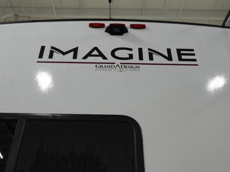 Just imagine leaving the world behind and secluding yourself away with your favorite people in your Grand Design Imagine travel trailer! The Imagine has been designed to enjoy extended season camping and includes a high-capacity furnace, a heated and enclosed underbelly with suspended tanks, a designated heat duct to the subfloor, and a high-density roof insulation with attic vent. You'll have maximum head room on the interior with 81" radius ceilings, and large panoramic windows to let in natural lighting. The exclusive drop-frame pass-through storage compartment is going to allow you to bring along lots of equipment, and the universal docking station is an all-in-one location for utilities and hook-ups. You'll also have oversized tank capacities so that you can fill and empty your tanks less often.
