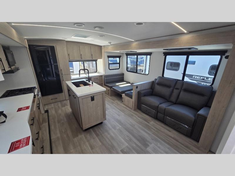 Just imagine leaving the world behind and secluding yourself away with your favorite people in your Grand Design Imagine travel trailer! The Imagine has been designed to enjoy extended season camping and includes a high-capacity furnace, a heated and enclosed underbelly with suspended tanks, a designated heat duct to the subfloor, and a high-density roof insulation with attic vent. You'll have maximum head room on the interior with 81" radius ceilings, and large panoramic windows to let in natural lighting. The exclusive drop-frame pass-through storage compartment is going to allow you to bring along lots of equipment, and the universal docking station is an all-in-one location for utilities and hook-ups. You'll also have oversized tank capacities so that you can fill and empty your tanks less often.