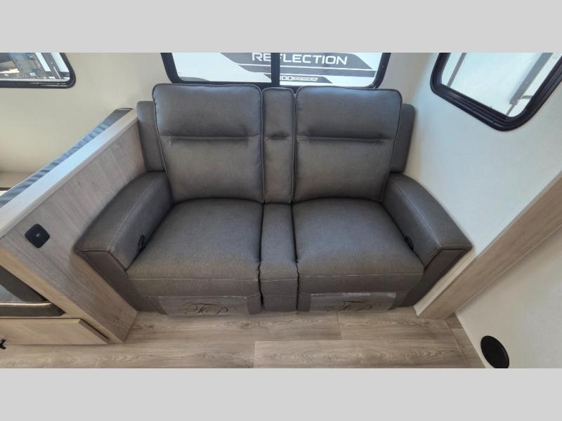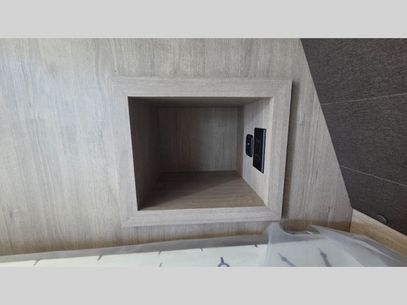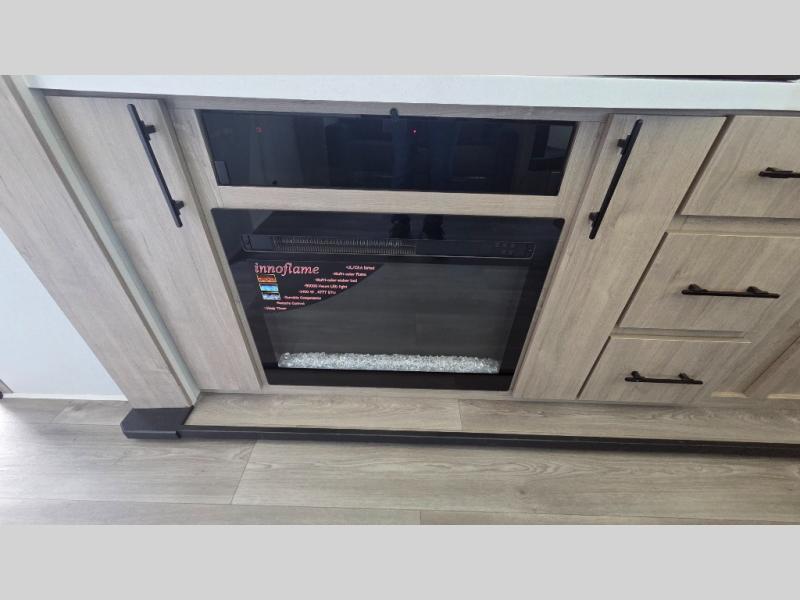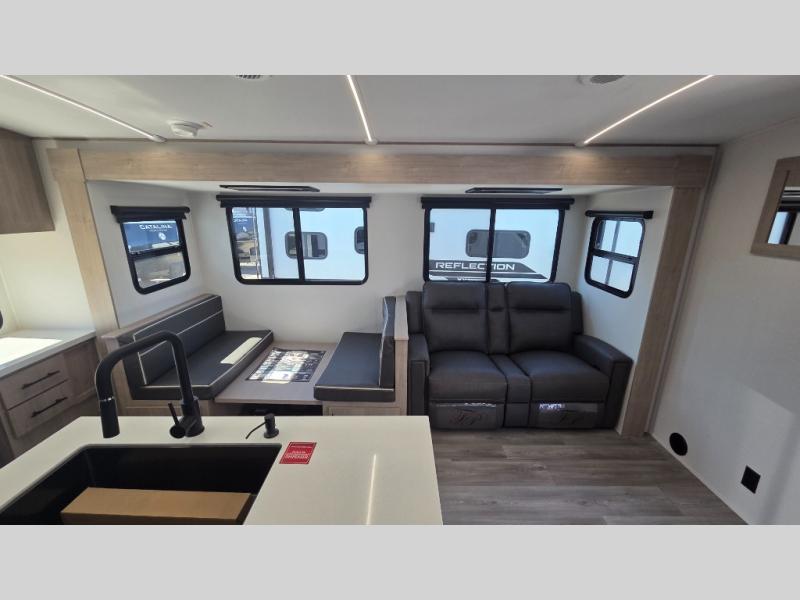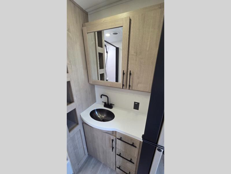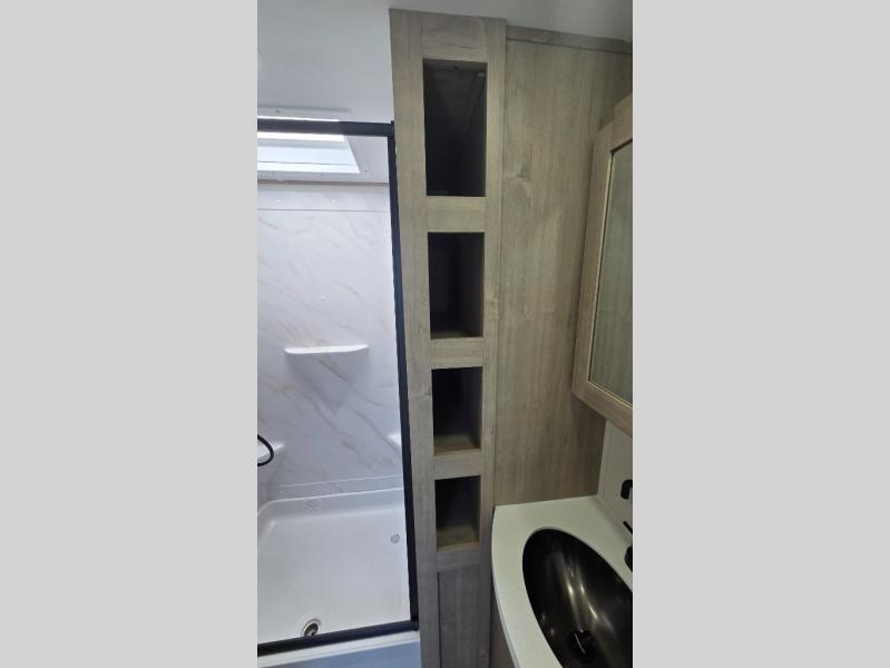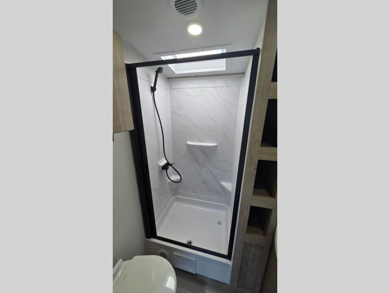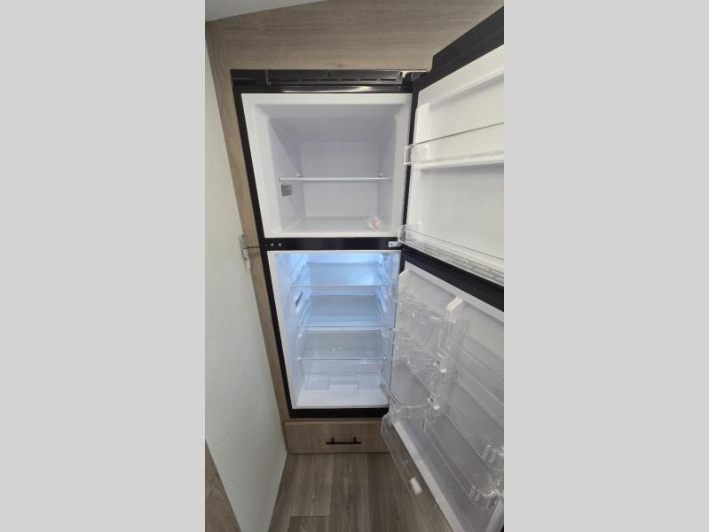 With this Imagine travel trailer, you can work while you're on the road because it offers you a desk in the main living area. You won't have to miss out on the action since you'll be right next to the booth dinette and tri-fold sofa, and there is even a pantry directly to the left of the desk for you to grab a quick snack while you're working. Once you're done with work, you can relax on the tri-fold sofa while you watch the telescoping LED HDTV, and the private bedroom offers you a 60" x 80" queen bed to rest on when you're ready to call it a night.