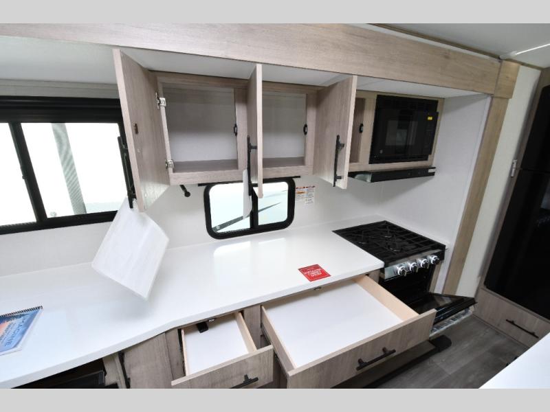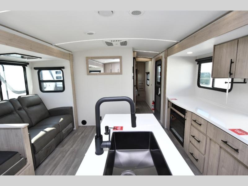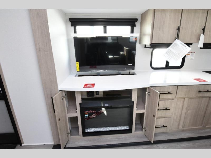 Inside, the 2670MK offers a thoughtfully designed floorplan perfect for families or couples who love to travel in comfort. Relax at the booth dinette, enjoy theater seating in place of a tri-fold sofa, and cozy up by the fireplace after a long day of adventure. With dual ducted A/C units, 50-amp service wired for a second A/C, and premium insulation, this unit ensures comfort no matter the season. Safety and confidence come standard with ABS axle assembly with sway control, Goodyear tires, and SafeRide RV roadside assistance, while solar prep keeps you ready for off-grid adventures.