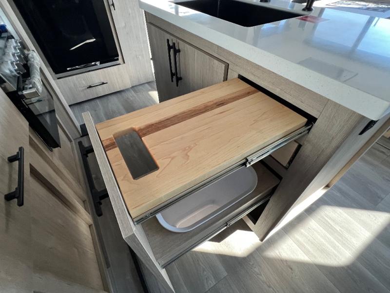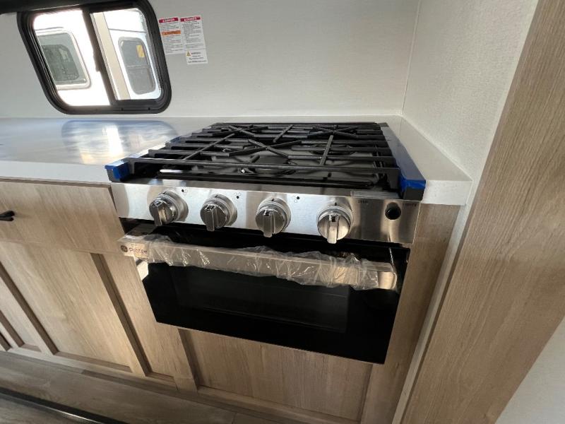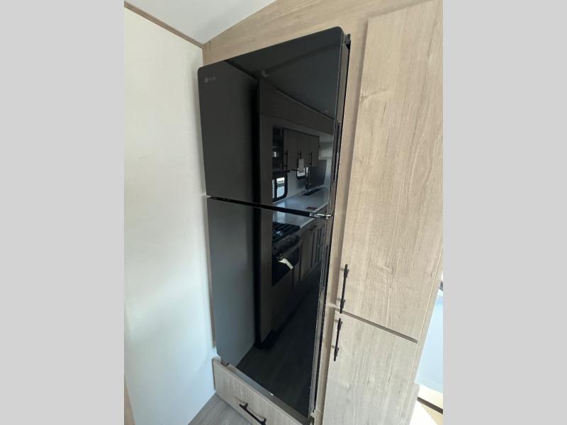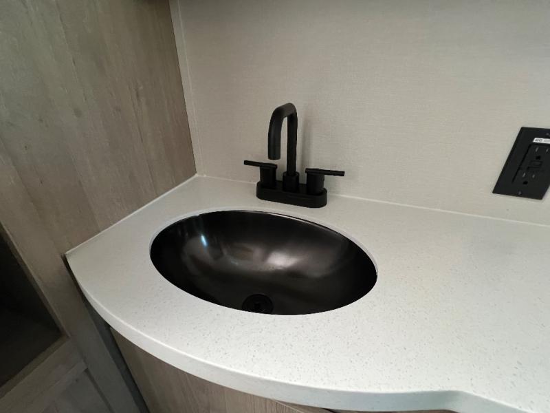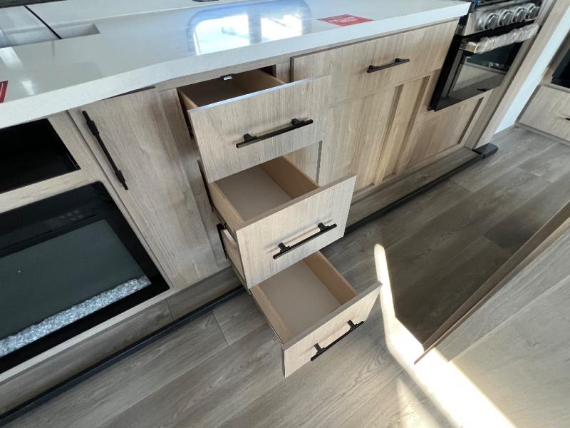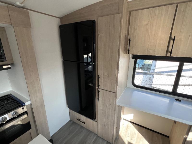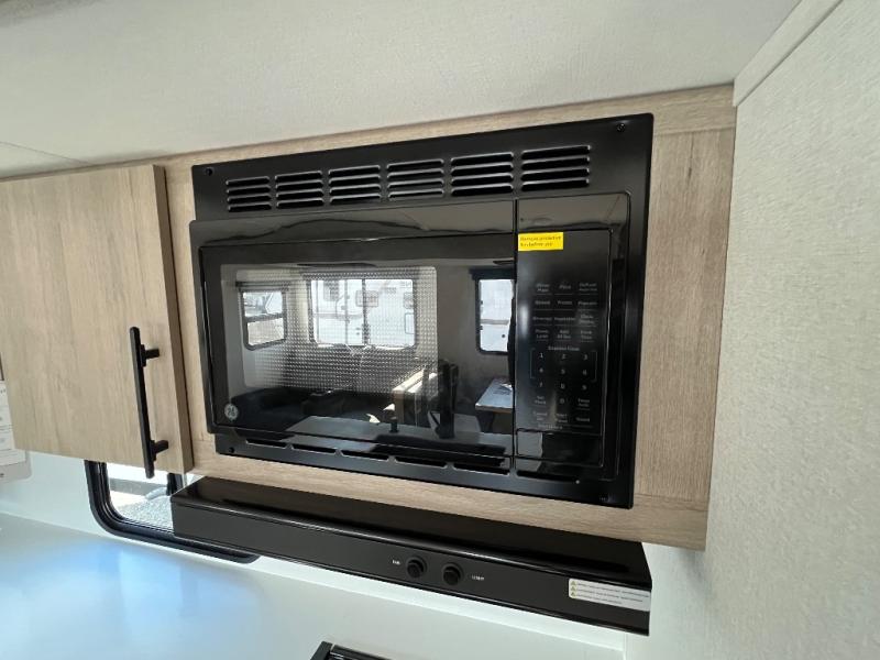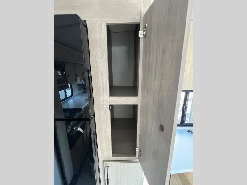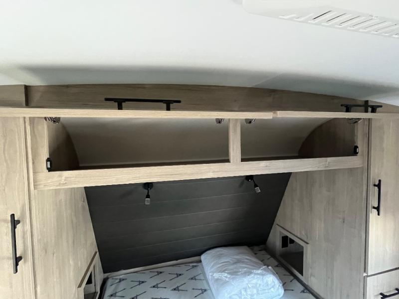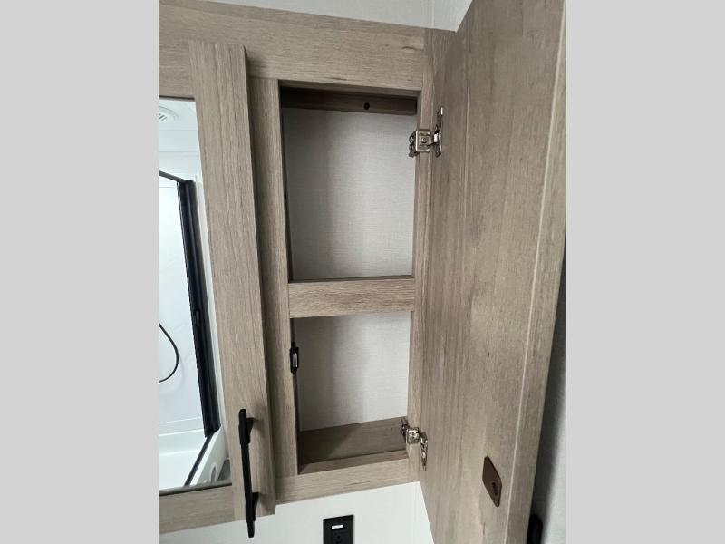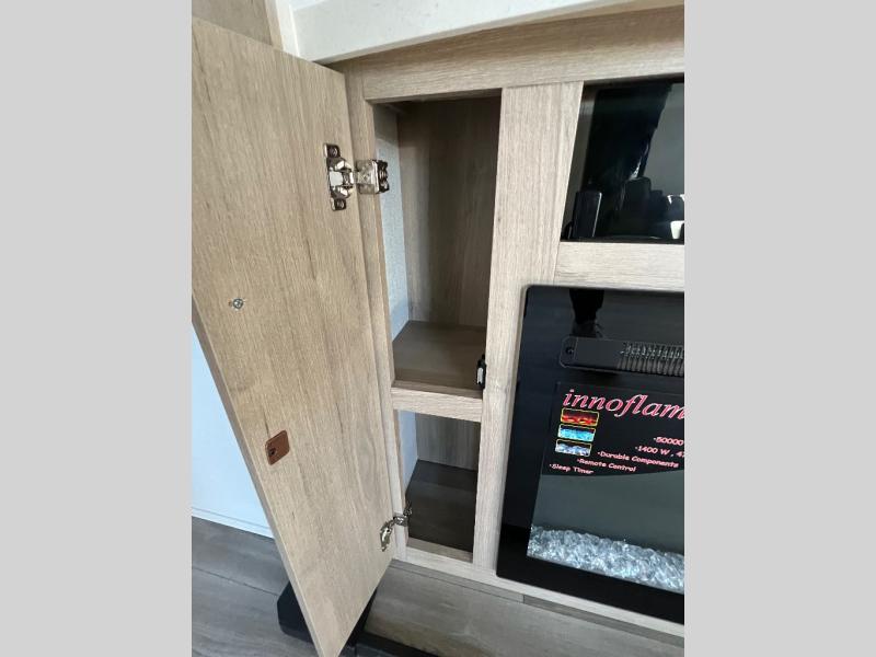 With this Imagine travel trailer, you can work while you're on the road because it offers you a desk in the main living area. You won't have to miss out on the action since you'll be right next to the booth dinette and tri-fold sofa, and there is even a pantry directly to the left of the desk for you to grab a quick snack while you're working. Once you're done with work, you can relax on the tri-fold sofa while you watch the telescoping LED HDTV, and the private bedroom offers you a 60" x 80" queen bed to rest on when you're ready to call it a night.