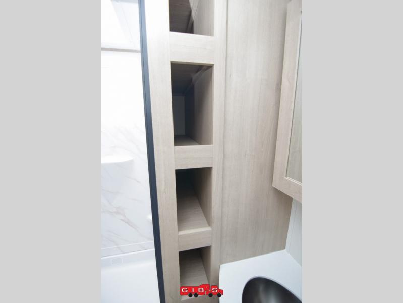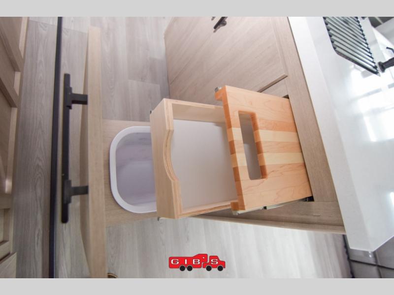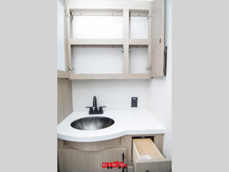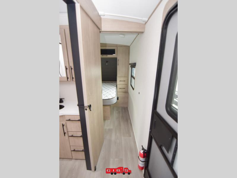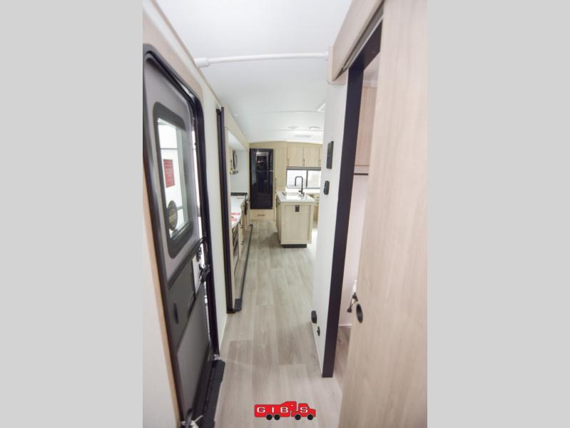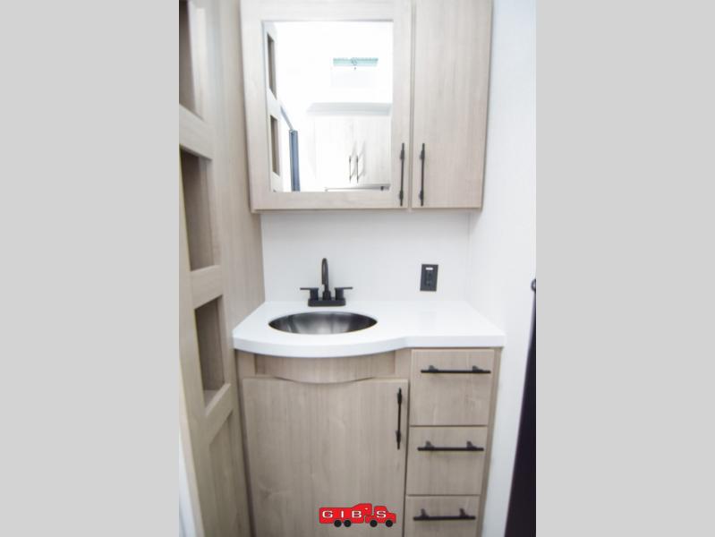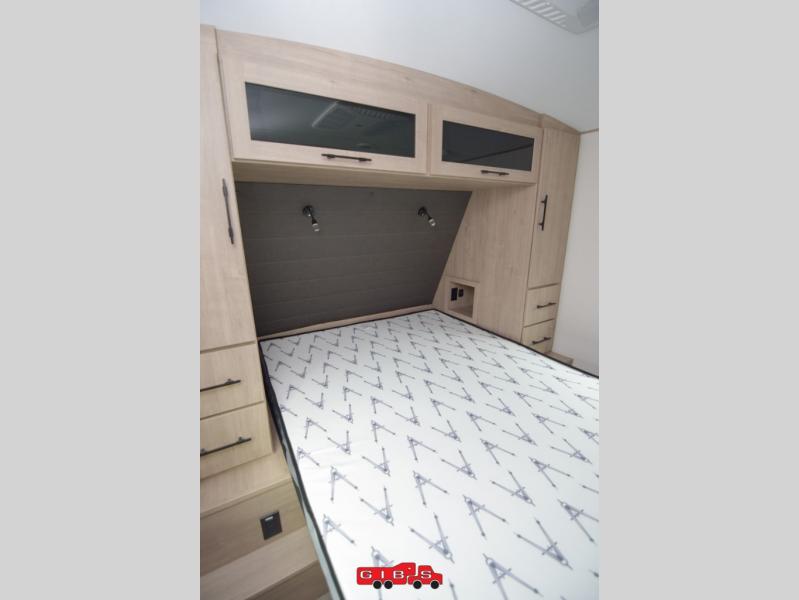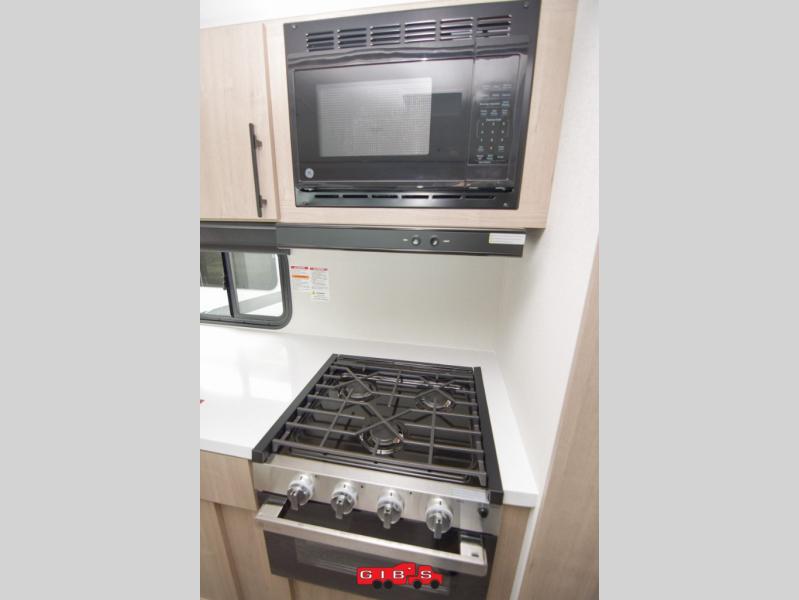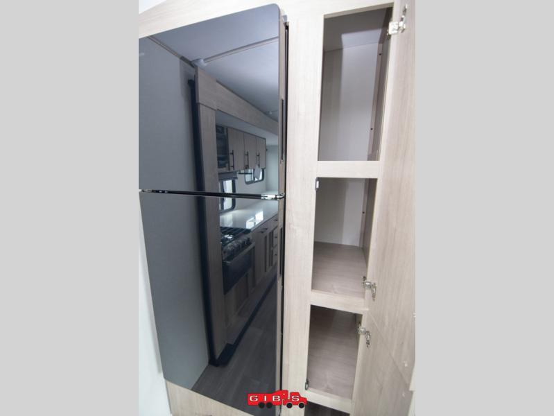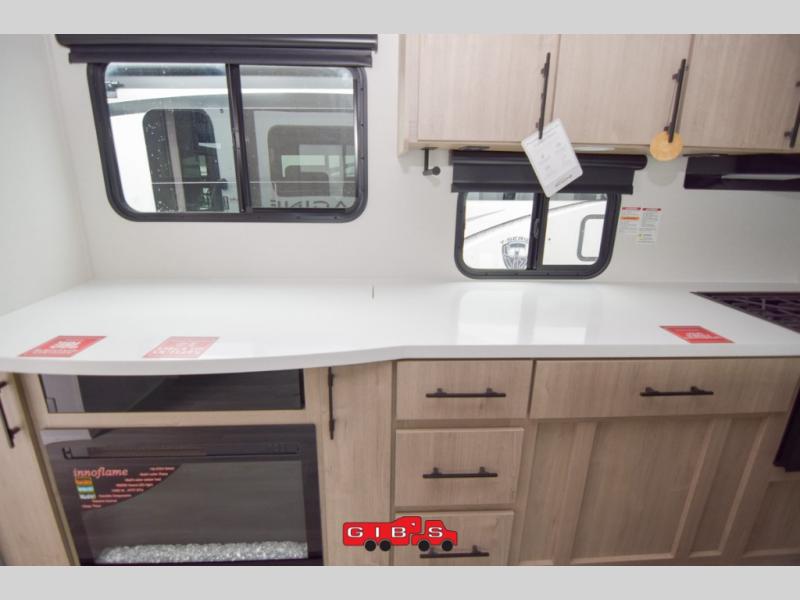 With this Imagine travel trailer, you can work while you're on the road because it offers you a desk in the main living area. You won't have to miss out on the action since you'll be right next to the booth dinette and tri-fold sofa, and there is even a pantry directly to the left of the desk for you to grab a quick snack while you're working. Once you're done with work, you can relax on the tri-fold sofa while you watch the telescoping LED HDTV, and the private bedroom offers you a 60" x 80" queen bed to rest on when you're ready to call it a night.