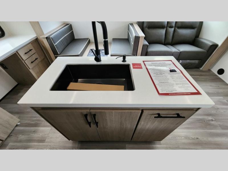 Just imagine leaving the world behind and secluding yourself away with your favorite people in your Grand Design Imagine travel trailer! The Imagine has been designed to enjoy camping and includes a high-capacity furnace, a heated and enclosed underbelly with suspended tanks, a designated heat duct to the subfloor, and a high-density roof insulation with attic vent. You'll have a large panoramic window to let natural lighting in and an adjustable Power Awning with LED Lights for those night gatherings. The exclusive drop-frame pass-through storage compartment is going to allow you to bring along lots of equipment, and the universal docking station is an all-in-one location for utilities and hook-ups. You'll also have oversized tank capacities so that you can fill and empty your tanks less often.