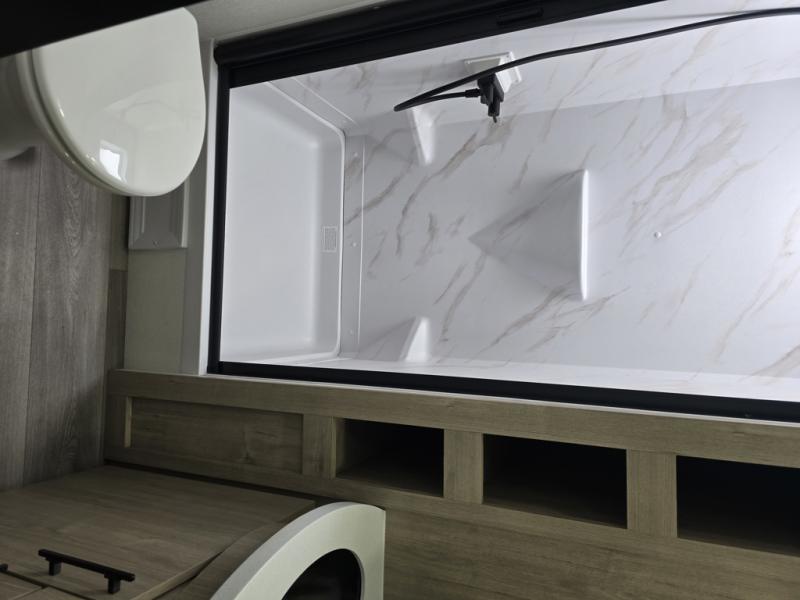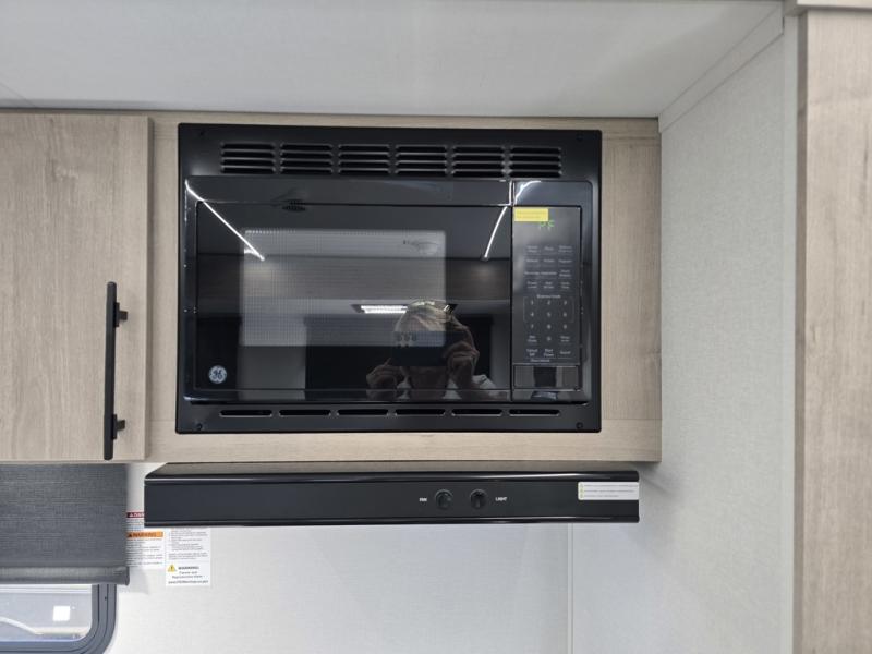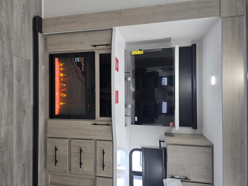 With this Imagine travel trailer, you can work while you're on the road because it offers you a desk in the main living area. You won't have to miss out on the action since you'll be right next to the booth dinette and tri-fold sofa, and there is even a pantry directly to the left of the desk for you to grab a quick snack while you're working. Once you're done with work, you can relax on the tri-fold sofa while you watch the telescoping LED HDTV, and the private bedroom offers you a 60" x 80" queen bed to rest on when you're ready to call it a night.