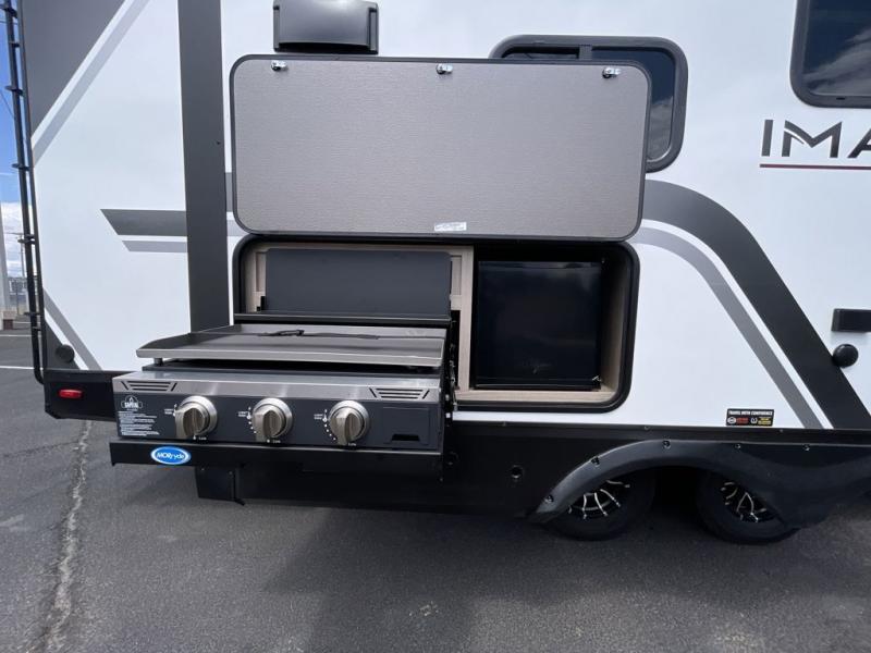 Just imagine leaving the world behind and secluding yourself away with your favorite people in your Grand Design Imagine travel trailer! The Imagine has been designed to enjoy camping and includes a high-capacity furnace, a heated and enclosed underbelly with suspended tanks, a designated heat duct to the subfloor, and a high-density roof insulation with attic vent. You'll have a large panoramic window to let natural lighting in and an adjustable Power Awning with LED Lights for those night gatherings. The exclusive drop-frame pass-through storage compartment is going to allow you to bring along lots of equipment, and the universal docking station is an all-in-one location for utilities and hook-ups. You'll also have oversized tank capacities so that you can fill and empty your tanks less often.
