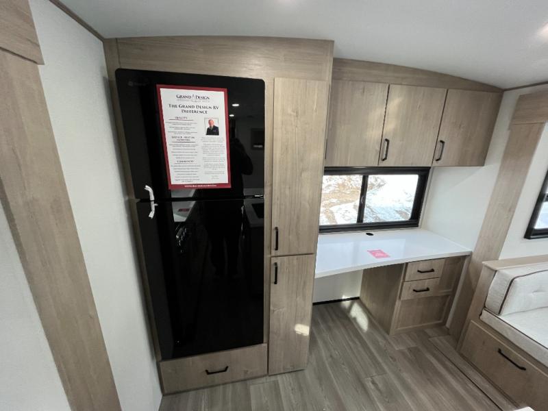Just imagine leaving the world behind and secluding yourself away with your favorite people in your Grand Design Imagine travel trailer! The Imagine has been designed to enjoy camping and includes a high-capacity furnace, a heated and enclosed underbelly with suspended tanks, a designated heat duct to the subfloor, and a high-density roof insulation with attic vent. You'll have a large panoramic window to let natural lighting in and an adjustable Power Awning with LED Lights for those night gatherings. The exclusive drop-frame pass-through storage compartment is going to allow you to bring along lots of equipment, and the universal docking station is an all-in-one location for utilities and hook-ups. You'll also have oversized tank capacities so that you can fill and empty your tanks less often.