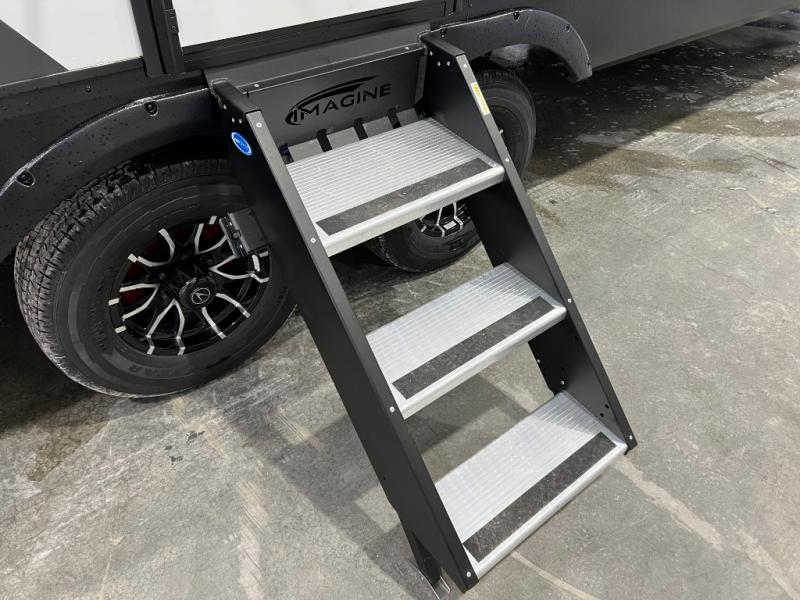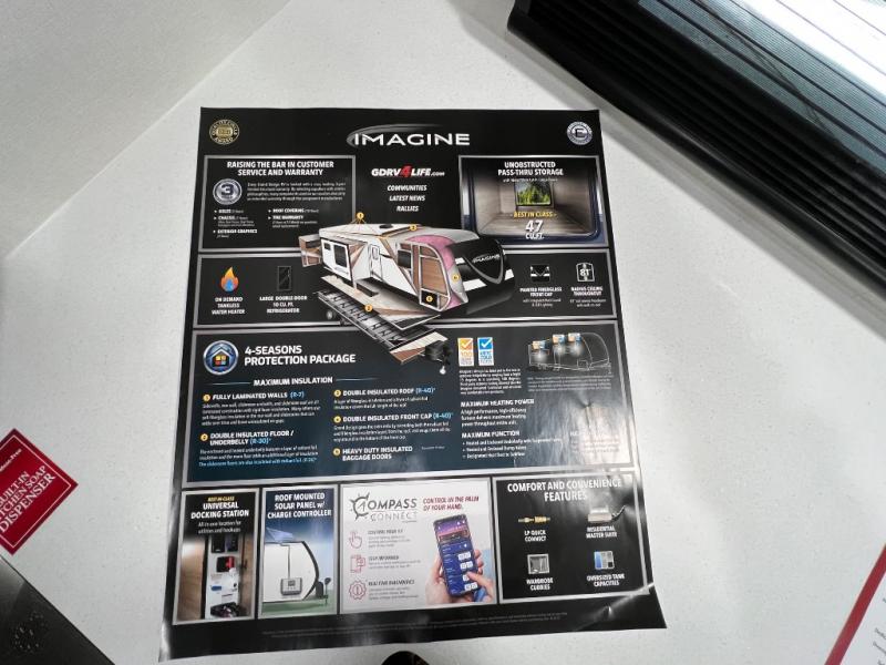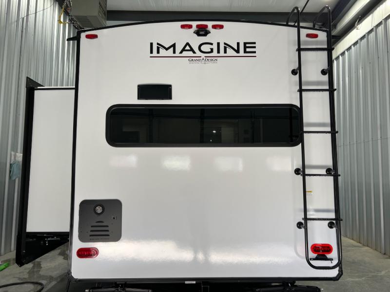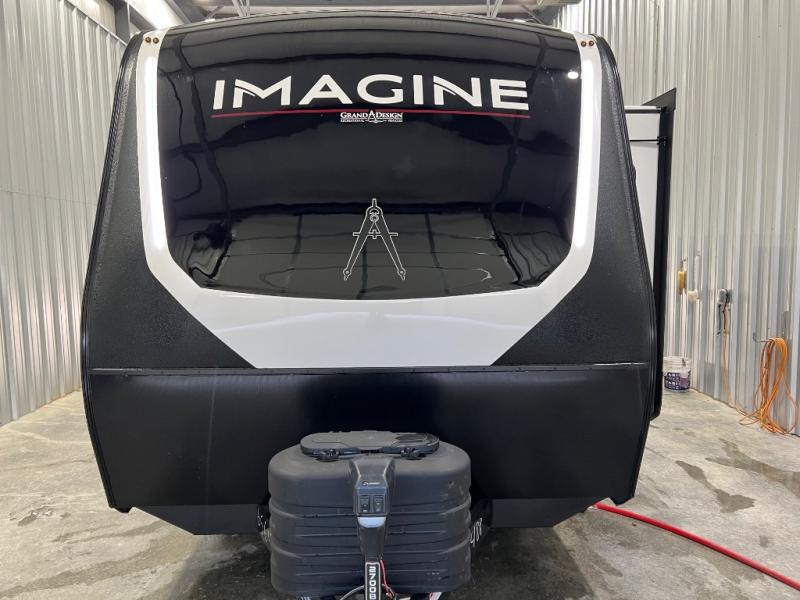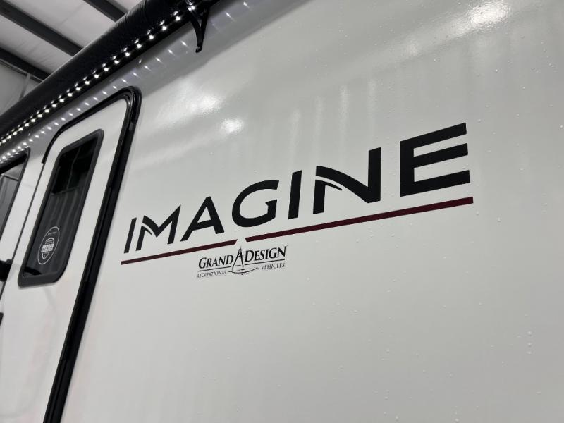 Just imagine leaving the world behind and secluding yourself away with your favorite people in your Grand Design Imagine travel trailer! The Imagine has been designed to enjoy camping and includes a high-capacity furnace, a heated and enclosed underbelly with suspended tanks, a designated heat duct to the subfloor, and a high-density roof insulation with attic vent. You'll have a large panoramic window to let natural lighting in and an adjustable Power Awning with LED Lights for those night gatherings. The exclusive drop-frame pass-through storage compartment is going to allow you to bring along lots of equipment, and the universal docking station is an all-in-one location for utilities and hook-ups. You'll also have oversized tank capacities so that you can fill and empty your tanks less often.