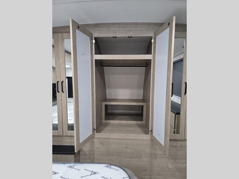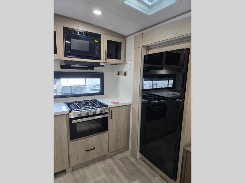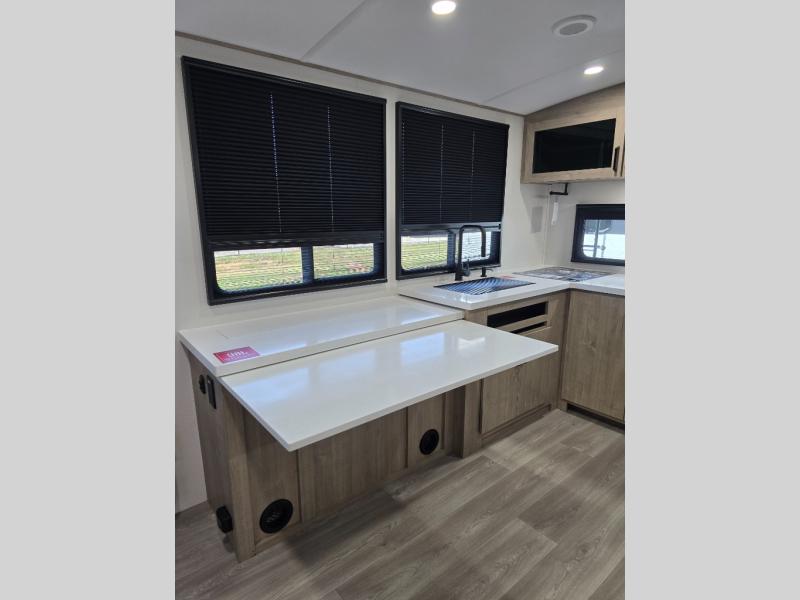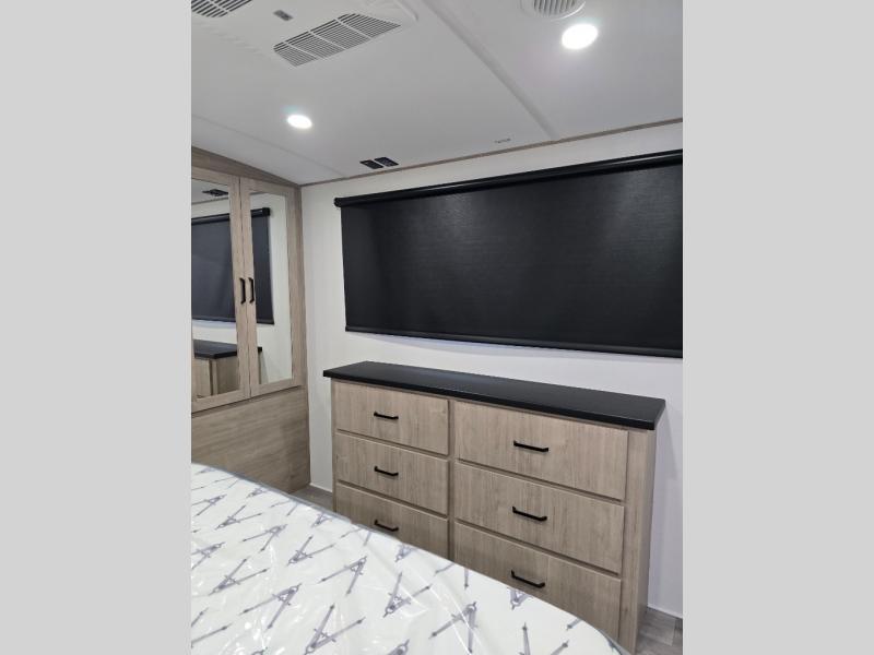 The private front bedroom offers a walk-around queen bed, dual wardrobes, and a solid door for true privacy. With dual entry doors, one large slide, and Grand Design’s renowned insulation and construction quality, the Imagine 2700BS is built for year-round adventures.