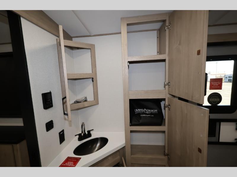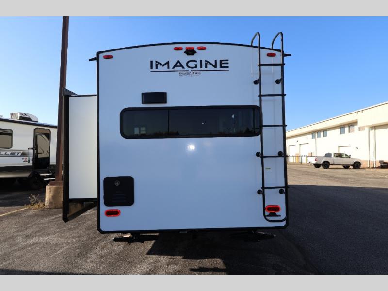 Just imagine leaving the world behind and secluding yourself away with your favorite people in your Grand Design Imagine travel trailer! The Imagine has been designed to enjoy camping and includes a high-capacity furnace, a heated and enclosed underbelly with suspended tanks, a designated heat duct to the subfloor, and a high-density roof insulation with attic vent. You'll have a large panoramic window to let natural lighting in and an adjustable Power Awning with LED Lights for those night gatherings. The exclusive drop-frame pass-through storage compartment is going to allow you to bring along lots of equipment, and the universal docking station is an all-in-one location for utilities and hook-ups. You'll also have oversized tank capacities so that you can fill and empty your tanks less often.