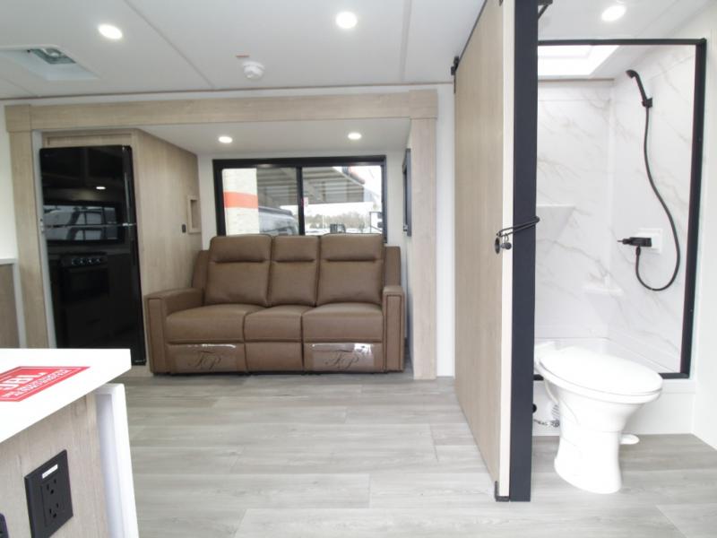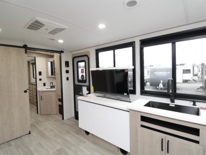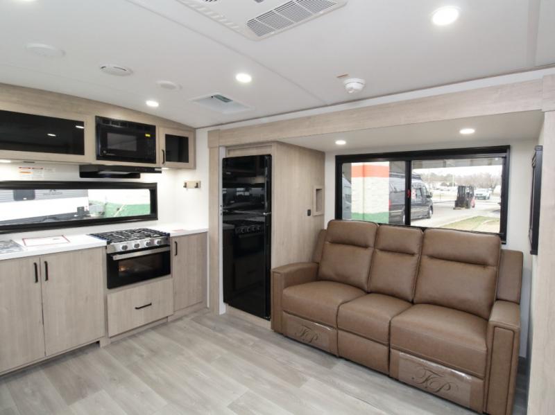 Rear Kitchen • Walk-Through Bathroom • Telescoping TV • 22' Power Awning