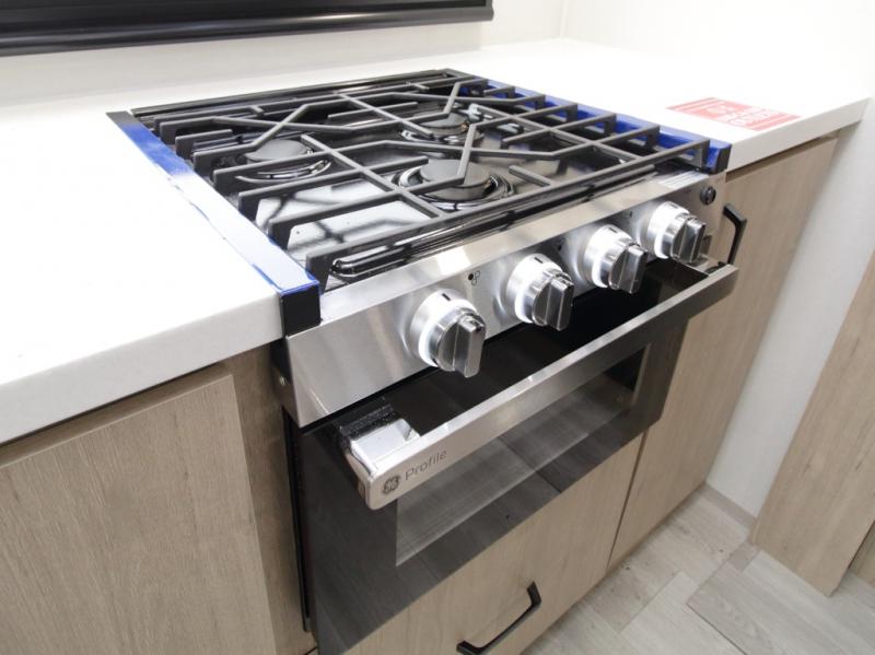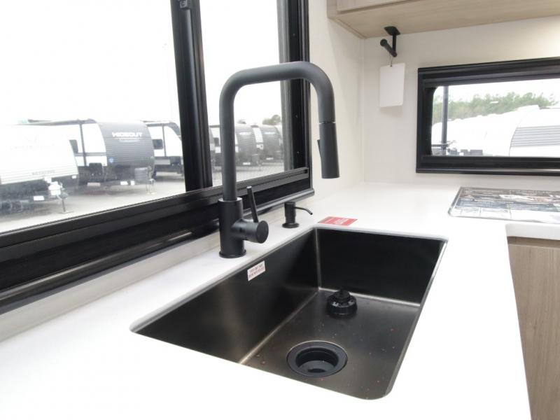A highlight of the 2700BS is the full rear kitchen, offering impressive prep space along the entire back wall. This well-equipped kitchen includes: