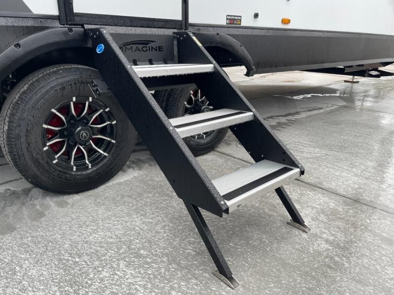 Just imagine leaving the world behind and secluding yourself away with your favorite people in your Grand Design Imagine travel trailer! The Imagine has been designed to enjoy camping and includes a high-capacity furnace, a heated and enclosed underbelly with suspended tanks, a designated heat duct to the subfloor, and a high-density roof insulation with attic vent. You'll have a large panoramic window to let natural lighting in and an adjustable Power Awning with LED Lights for those night gatherings. The exclusive drop-frame pass-through storage compartment is going to allow you to bring along lots of equipment, and the universal docking station is an all-in-one location for utilities and hook-ups. You'll also have oversized tank capacities so that you can fill and empty your tanks less often.