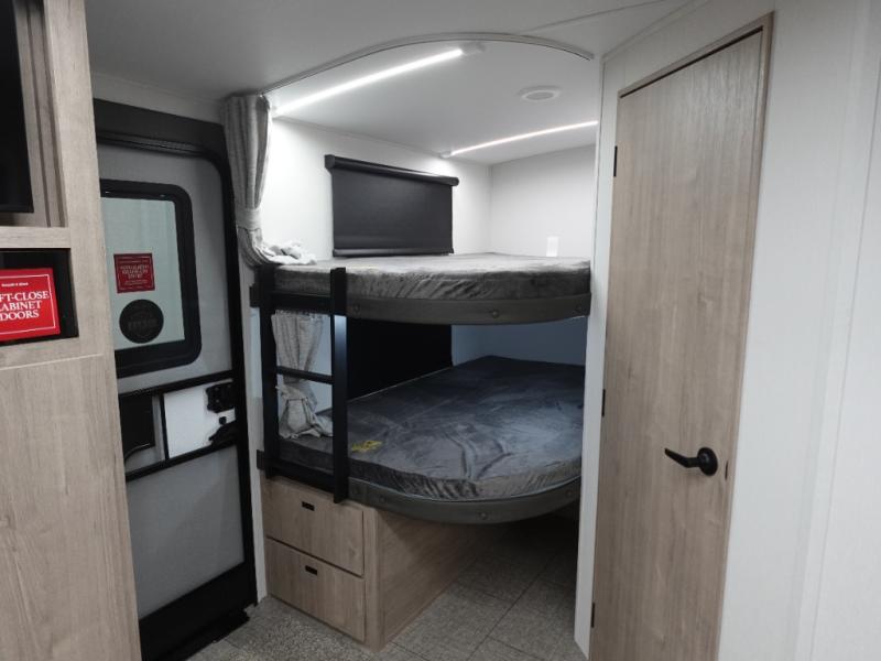Where will you go with this Imagine travel trailer? The possibilities are endless! You can take your family on an exciting excursion because this trailer has enough sleeping space for everyone with a 60" x 80" queen bed in the private bedroom, a U-shaped dinette and tri-fold sofa in the main living area, and there is a set of 47" x 76" bunk beds with privacy curtains in the rear corner. You can come and go as you please with two entry doors, and the outdoor griddle and refrigerator will be fun to use when the weather is nice. The flip-up countertop extension will make it easier to prepare delicious home cooked meals and the shoe storage area helps to keep things neat and tidy.